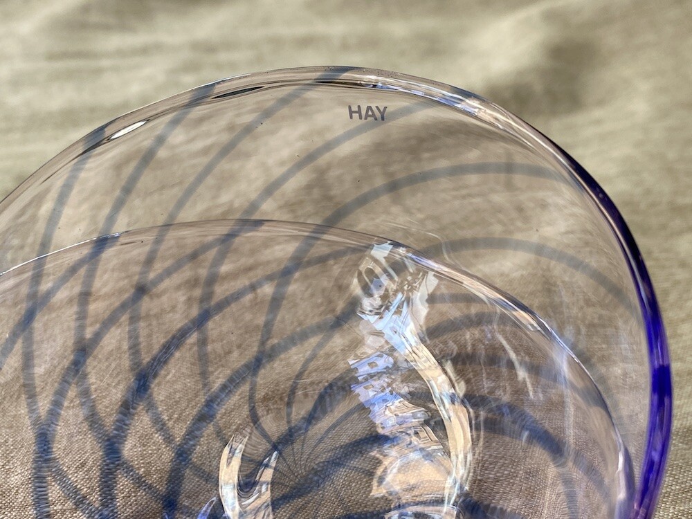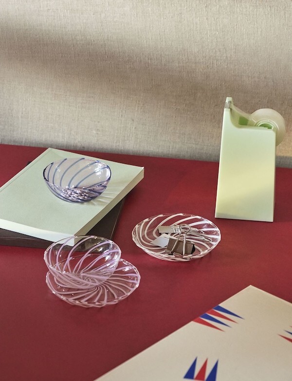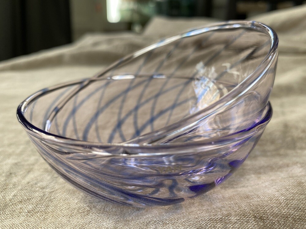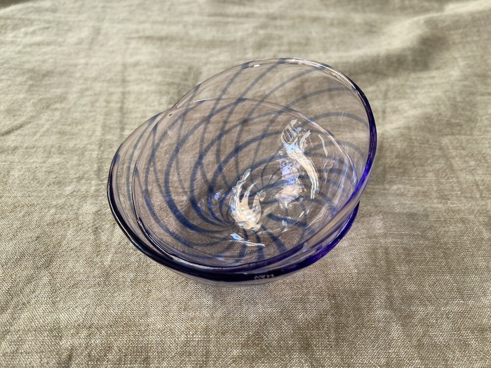 라이트 핑크 바탕에 파란색 소용돌이 줄무늬가 있는 유리 볼이에요. 같은 디자인의 제품이 2개 들어 있는 제품이에요. 음식에 사용해도 예쁘고 장식용으로 사용해도 예쁘답니다. 특히 붕규산 유리의 투명함 덕분에 시원한 느낌으로 사용하시기 좋을 거예요. 완전 투명색이 아니라, 분홍색이 도는 투명색이라 더욱 예쁘네요. 식기 세척기와 전자레인지에도 사용이 가능하다고 하니 편하기까지 해요.