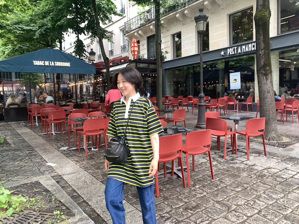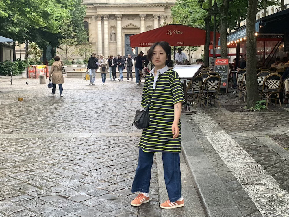 저는 보통 한국 옷 M 사이즈를 입습니다.
