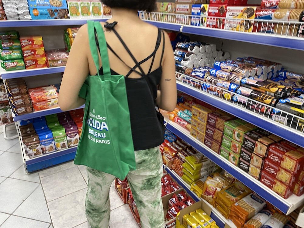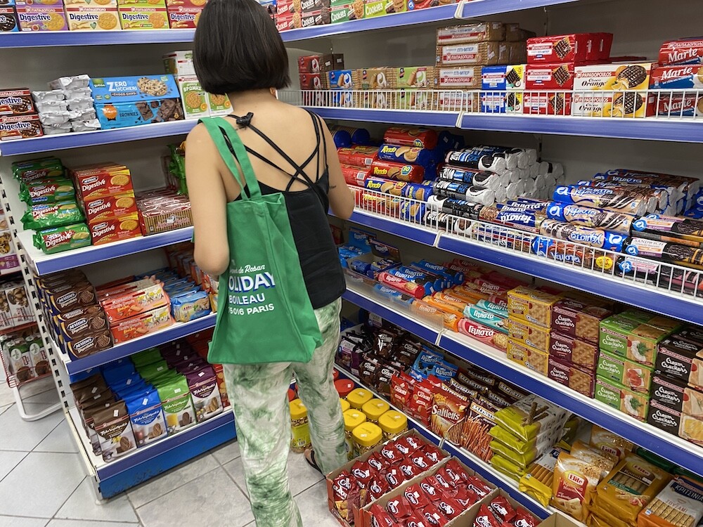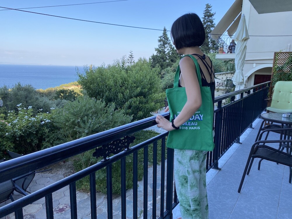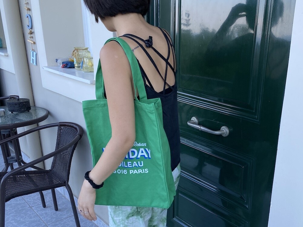 이 캔버스 토트백은 우선 소재가 탄탄하고 박음질이 튼튼해요. 그래서 물건을 많이 넣어도 늘어지는 느낌 없이 사용하실 수 있어요. 옆면과 밑면에 두께가 있어서 A4용지나 노트북을 넣기에도 좋은 모양이고요. 브랜드 이름과 파리 부티크의 주소를 프린트한 것도 재치있어요. 특히 제가 살고 있는 16구 지역의 우편번호라 왠지 더 정이 가네요.