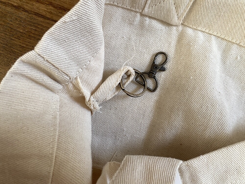큼지막한 에코백에 글씨가 자수로 놓여진 에코백이에요. 다양한 크기와 모양의 글씨 자수가 예쁘고요. 가방 크기가 큰만큼 끈도 넓어서, 물건을 많이 넣어도 어깨에 걸었을 때 편안한 느낌이 있어요. 독특한 점은, 안쪽에 열쇠고리가 달려 있어서 열쇠 외에 고리 달린 물건들을 묶어놓을 수 있어요. 짐 많이 들고 다니시는 분들께서 유용하게 사용하실 수 있으실 거예요.