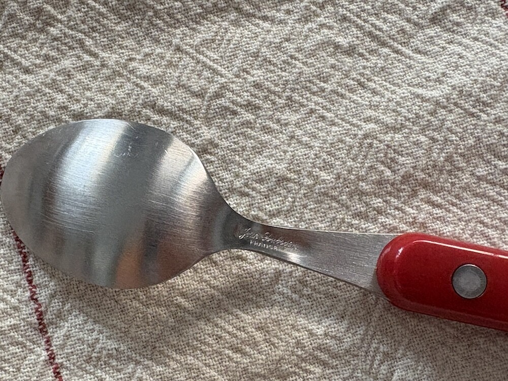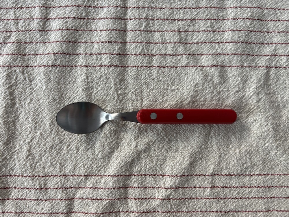 빨강색의 손잡이가 예쁜 티스푼입니다. 스푼의 머리 부분이 매끈해서 입에 들어갔을 때 느낌이 좋아요. 커피나 차를 드실 때 뿐 아니라 디저트를 먹을 때나 아기용 스푼으로 사용하시기에도 좋을 거예요.