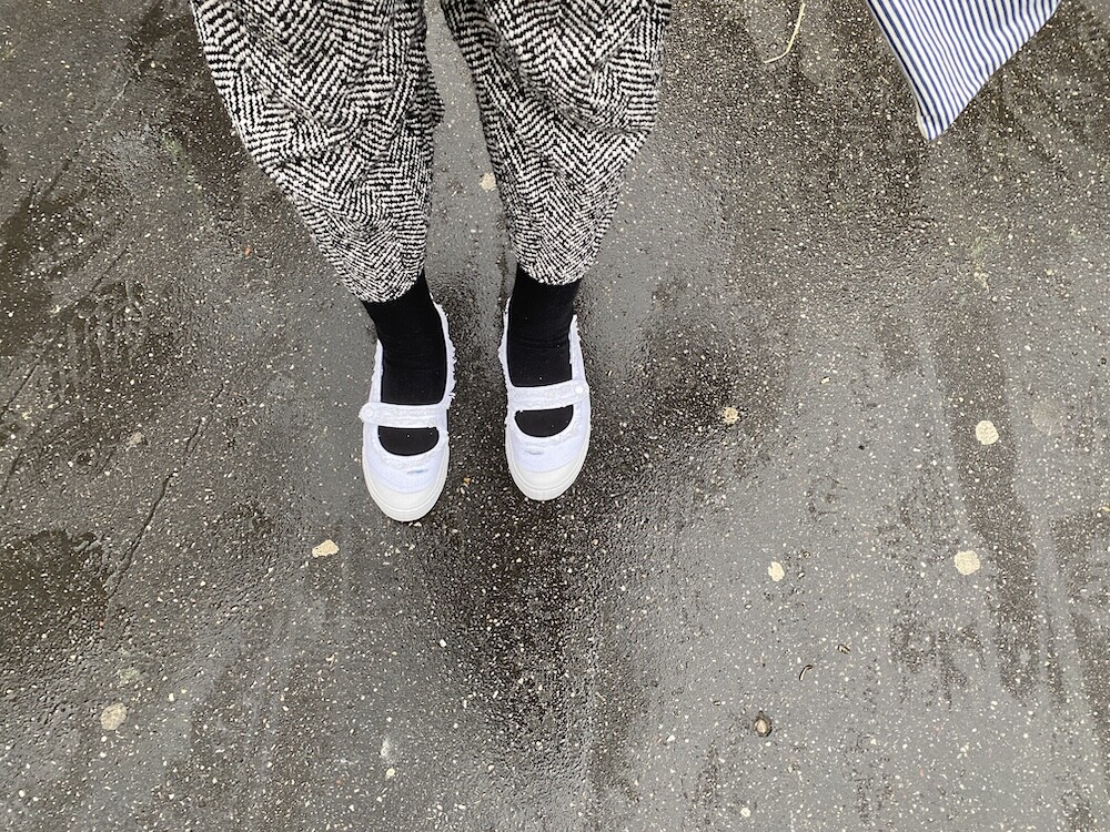 케즈에서 메리제인도 나오는 줄은 몰랐는데, 이 신발을 보는 순간 "이건 사야해!"를 외쳤어요. 저는 메리제인 슈즈를 좋아하는데, 가끔 이런 종류 신발의 느낌이 너무 여성스럽거나 소녀스러워서 부담스러울 때가 있더라고요. 그런데 이 신발은 그보다 좀 더 중성적인 느낌이 있어서 어떤 옷에나 부담없이 신을 수 있을 것 같았어요. 하필 비오는 날에 첫 개시를 해서 조심조심 신고 다녔는데, 발 편하고 좋아요. 메리제인 끈 부분은 똑딱이로 열고 닫을 수 있어서 신고 벗을 때도 편하더라고요.