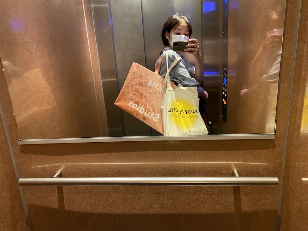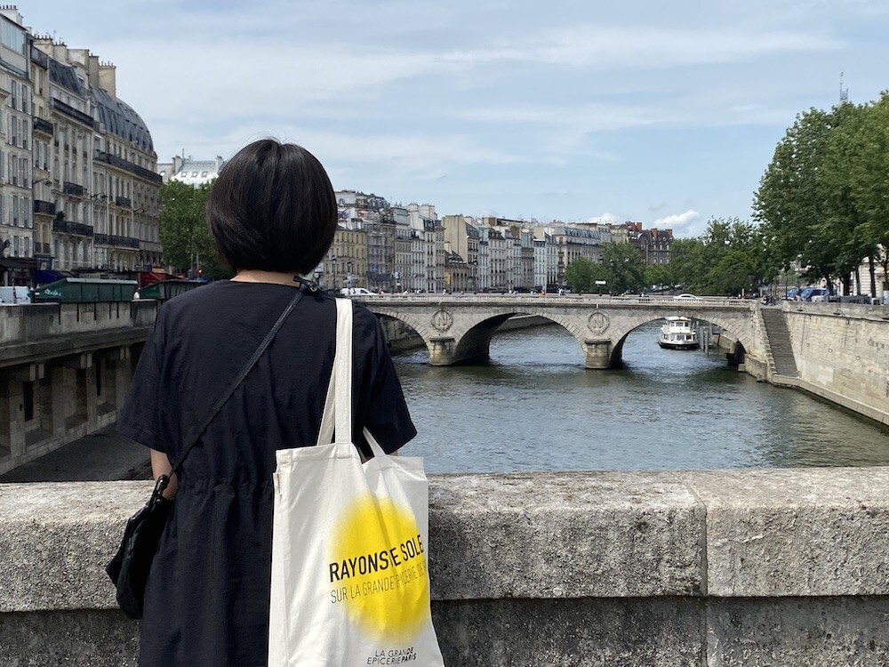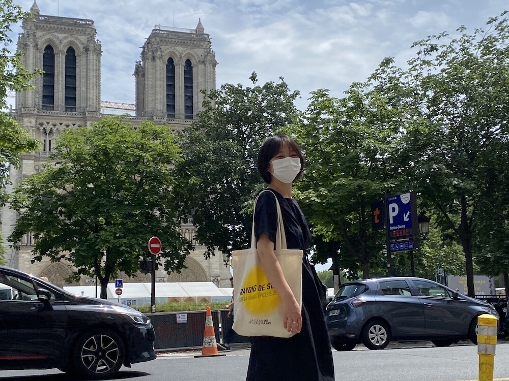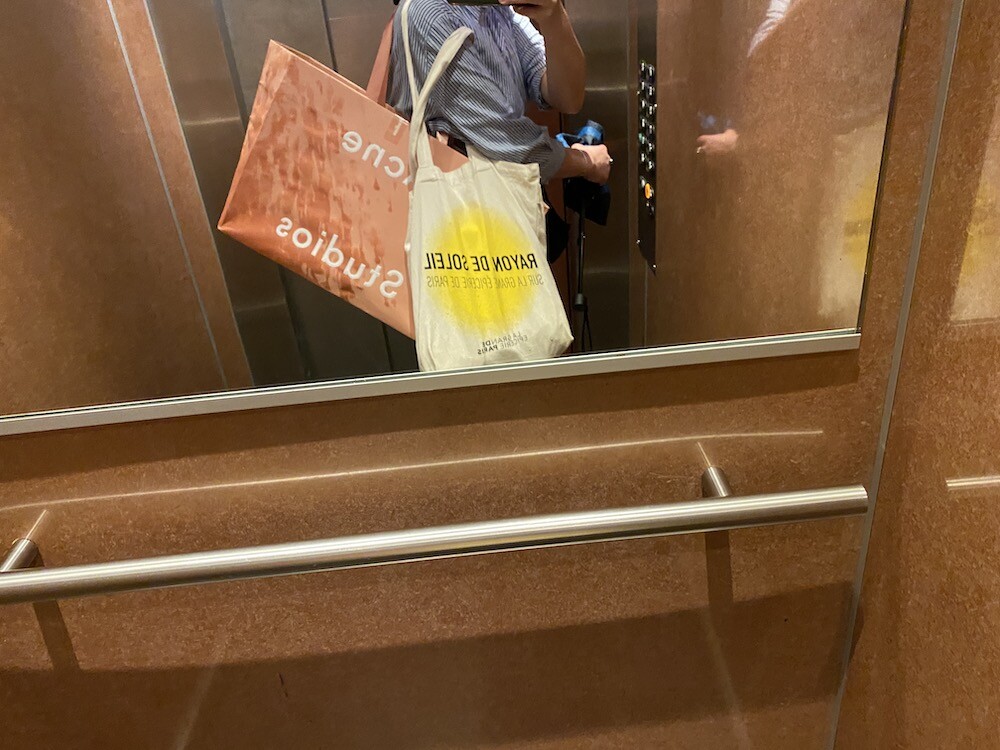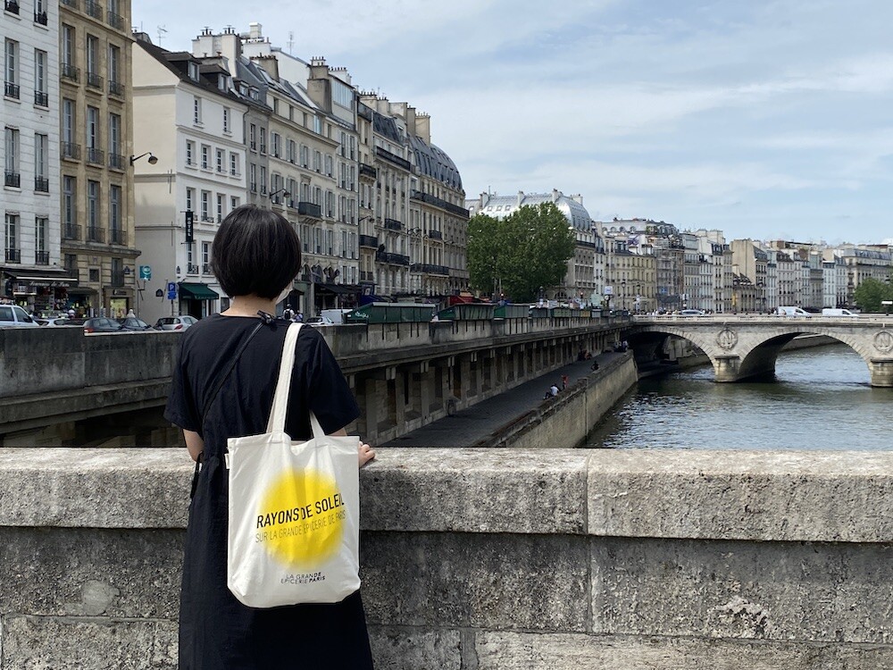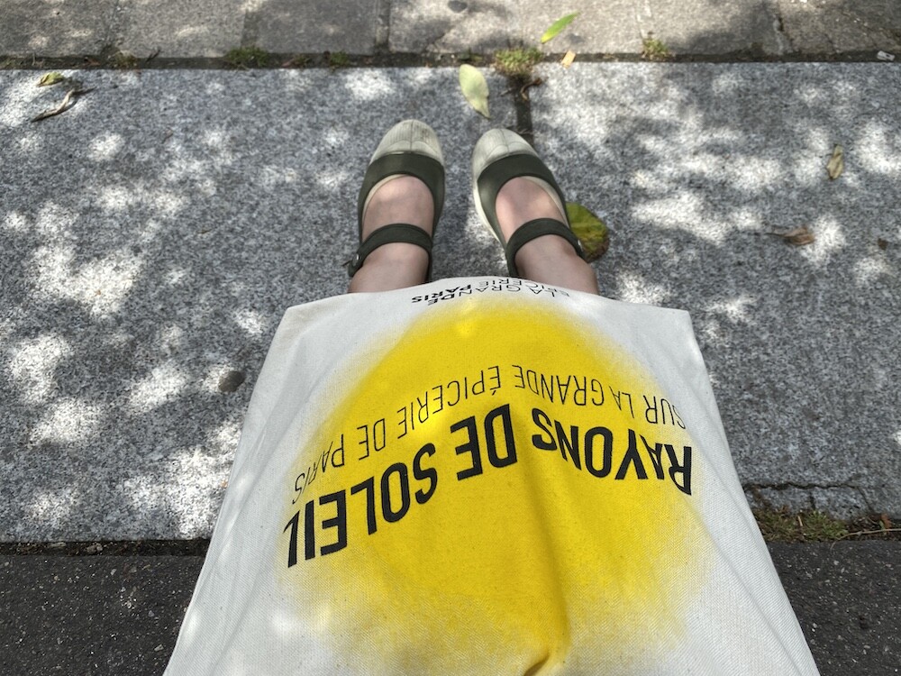가방에 씌여 있는 RAYONS DE SOLEIL는 '햇살, 햇빛'이라는 뜻인데요. 코로나로 인한 오랜 봉쇄를 끝낸 후 봉막쉐 백화점이 처음으로 준비한, 이번 시즌의 컨셉의 이름이기도 해요. 현재 봉막쉐 매장은 노란색의 햇살 모양으로 장식되어 있답니다.