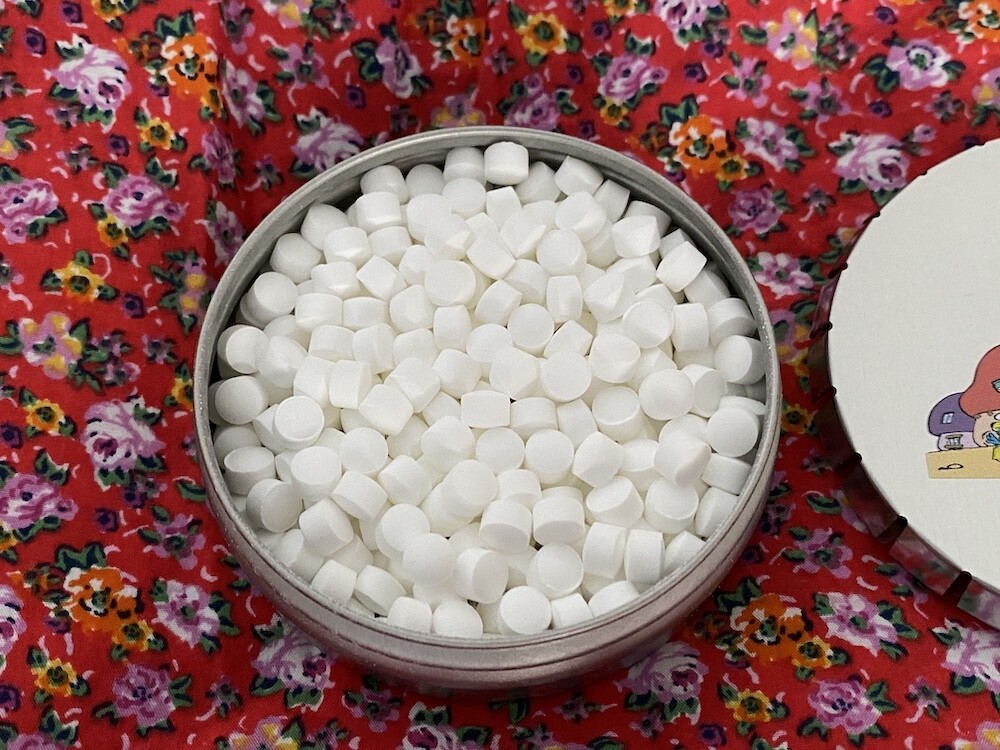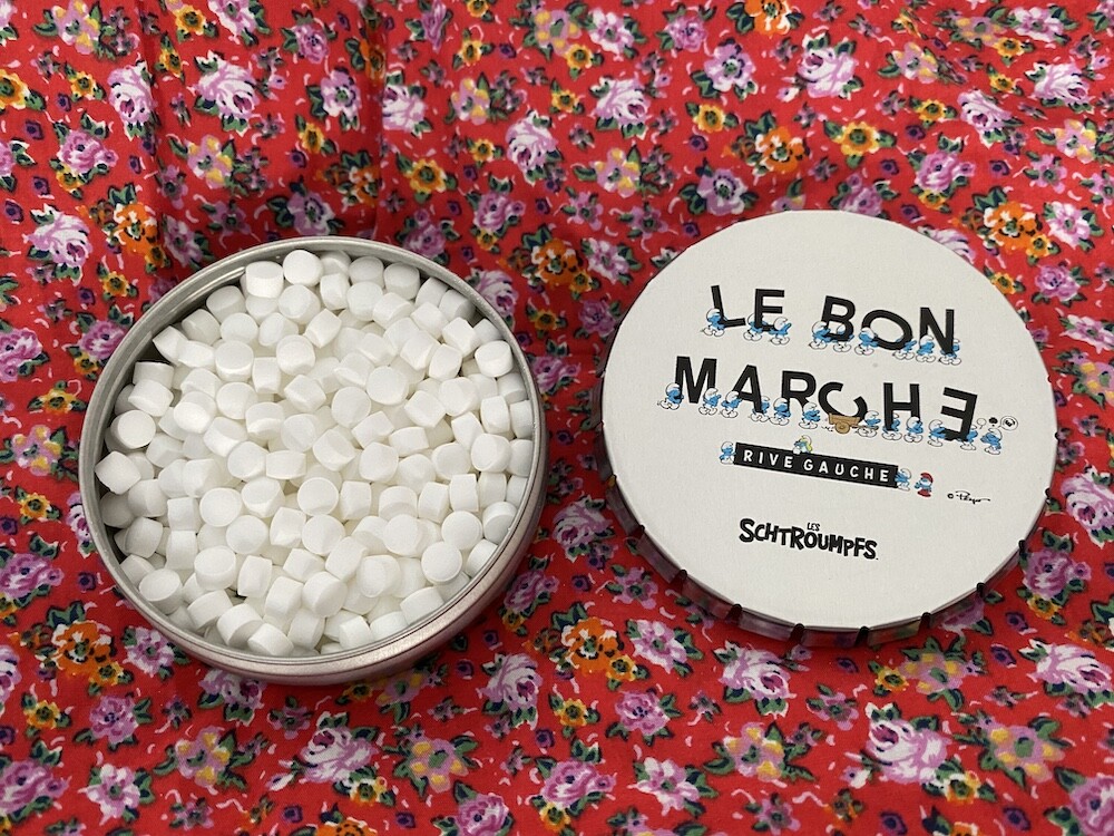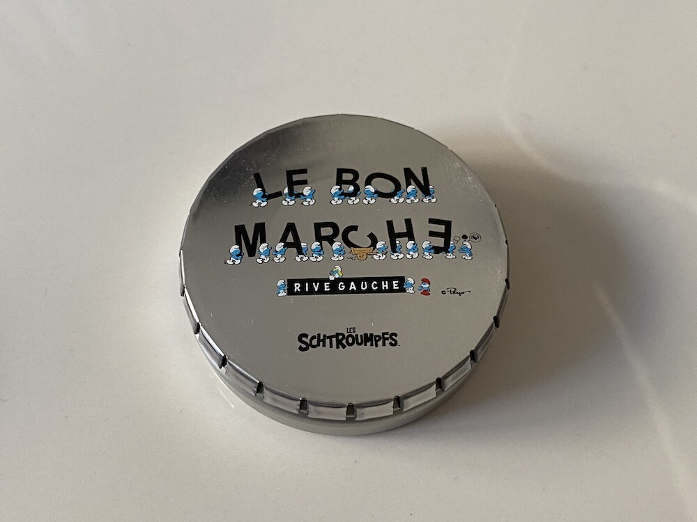 이 민트 사탕은 벨기에 이벤트를 위해 한정판으로 나온 제품이에요. 정말 시원하고 강한 민트로, 제형이 딱딱해서 개별 크기가 작아도 꽤 오래 녹여 먹을 수 있어요. 반짝이는 은색 틴케이스에 그려진 봉막쉐 BON MARCHÉ라는 글씨 사이에 깜찍하게 숨어 있는 스머프들을 찾다보면 기분까지 좋아지는 것 같아요.