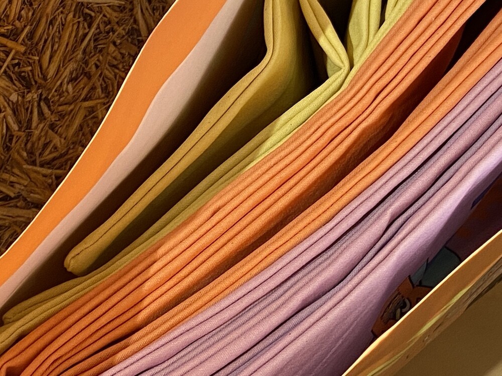 색상은 주황, 보랏빛 분홍, 노랑, 이렇게 세 가지인데요. 한정 수량으로 나온 제품이라 수량이 넉넉하지 않아 저는 주황색 한 가지만 착용했습니다. 나머지 색상은 봉막쉐 백화점의 매장 사진과 맨 아래의 상세 사진으로 봐 주세요.