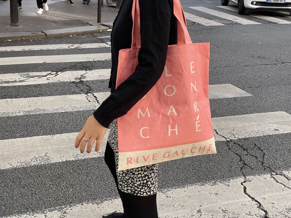 이 가방은 우선 색깔이 너무 예뻐요. 딱 보자마자 "와! 이건 하나 꼭 갖고 싶다!"라는 생각이 들었어요. 튼튼한 오가니 코튼에 박음질도 튼튼하게 잘 되어있어 실용성있게 사용하실 수 있고, LE BON MARCHÉ RIVE GAUCHE라는 글씨가 큼지막하게 써져 있어서 포인트 주기에도 좋은 아이템이에요.