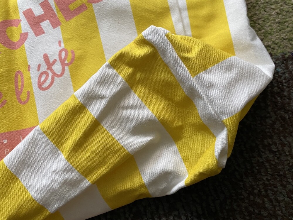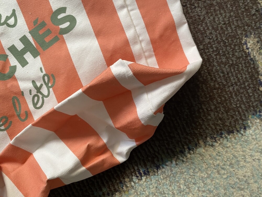 2023년에 한정으로 나왔던 제품인데 운 좋게 마지막으로 남은 제품들을 구해올 수 있게 되어서 진행해요. 여름에 잘 어울리는 로즈, 노랑, 올리브색의 조합으로 만들어진 줄무늬 에코백으로, 봉막쉐에서 여름 에코백 만들 때 자주 사용하는 색상들이에요. 이 가방을 보면 뜨거운 햇살 아래 누워 있는 제 모습을 상상하게 돼요. 얼른 여름이 오면 좋겠네요!