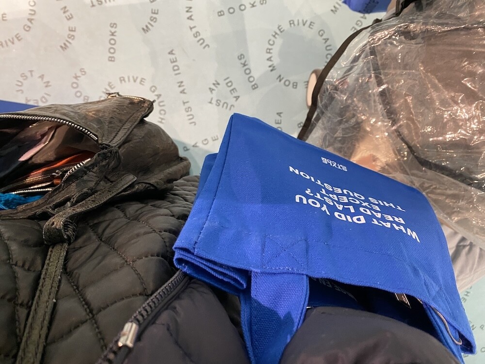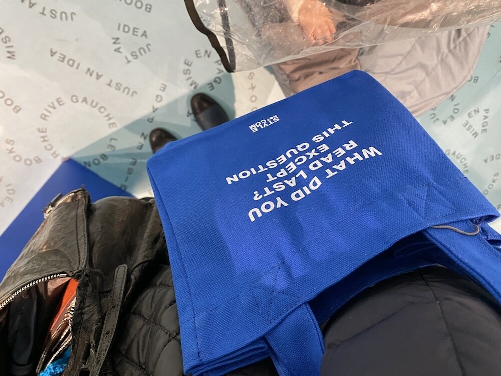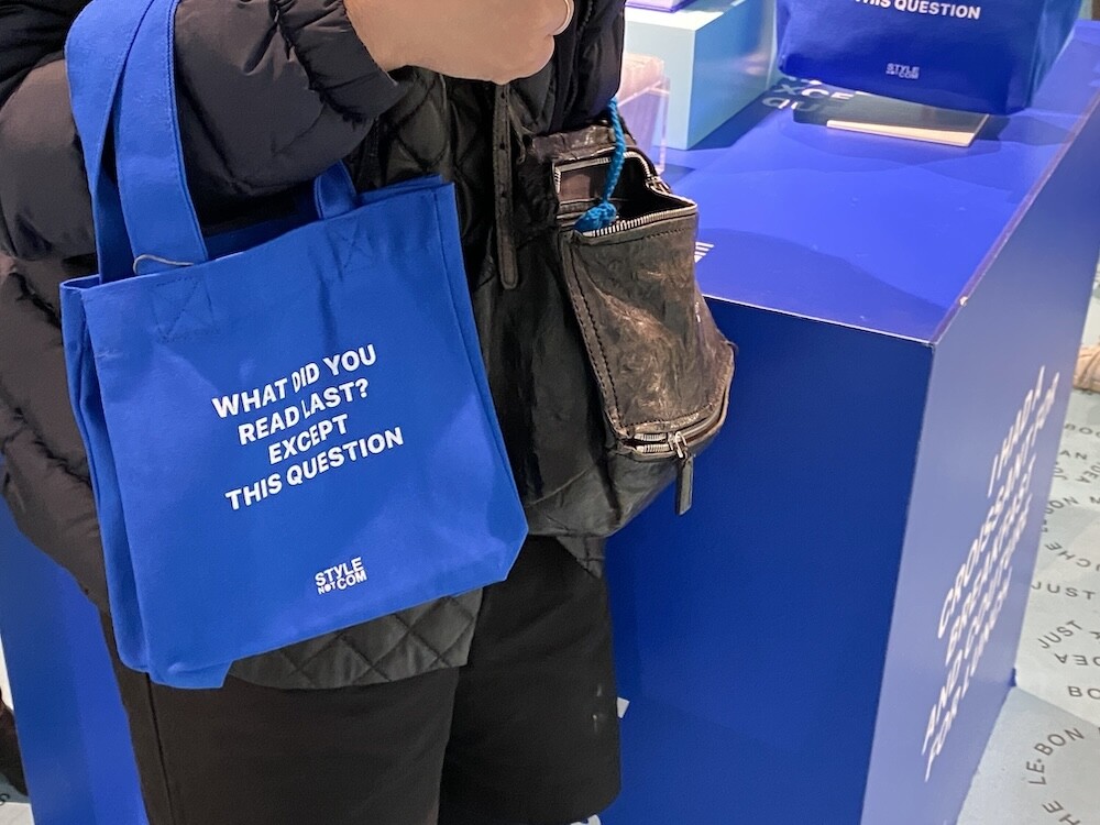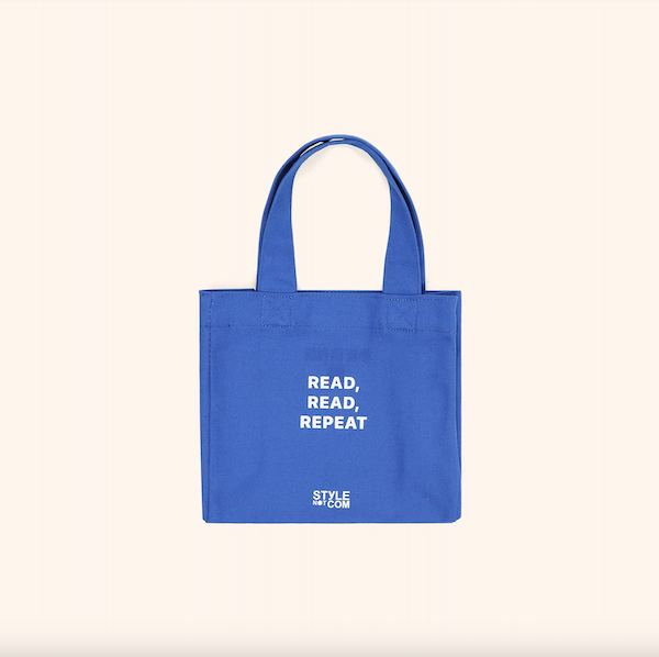 봉막쉐에서 열렸던 미정빠쥬 Mise En Page 팝업에서 한정으로 나온 미니 에코백입니다. 스타일 낫 컴(STYLE NOT COM)은 최신 패션 뉴스 중 하나이고, 사라 앙델만(SARAH ANDELMAN)은 지금은 없어졌지만 파리를 대표하는 편집샵이었던 콜레트(Colette)의 공동 창시자 겸 디렉터예요. 이 에코백은 콜레트 편집샵의 심볼 색상이었던 파랑색에 스타일 낫 컴의 파란 배경과 흰색 글씨를 더하여 만들어졌는데, 가방의 앞뒷면 크기는 작지만 옆면 넓이가 넓어서 책이나 물건들을 넣어 다니기 딱 좋은, 한국 분들이 딱 좋아하는 크기의 가방이에요. 손목에 걸고 다니시면 예쁠 거예요.