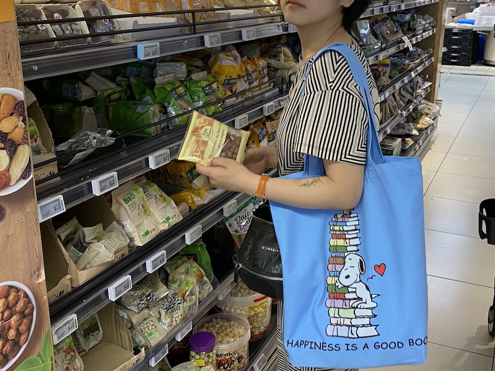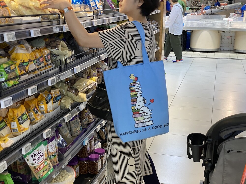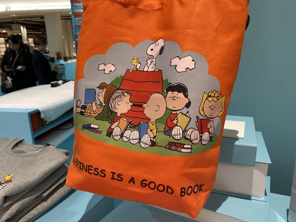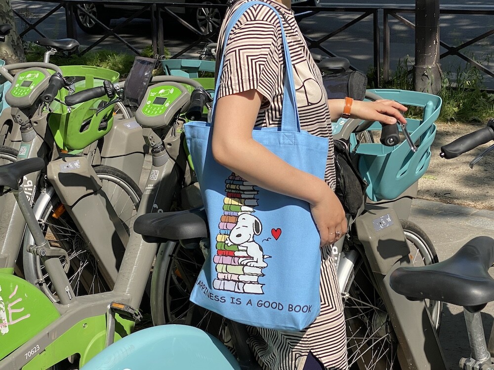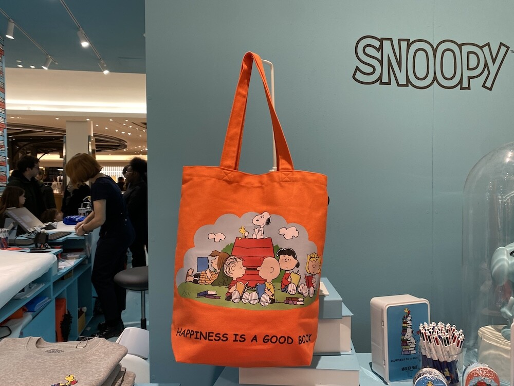 봉막쉐 백화점에서 한정으로 나온 에코백입니다. 책과 관련된 스누피 그림들이 귀엽게 그려져 있어서 사용할 때마다 기분이 좋아져요. 세 가지 색상에 그려진 그림들도 모두 다르니 잘 보시고 선택해 주세요.
