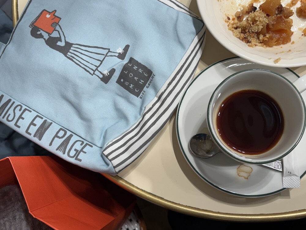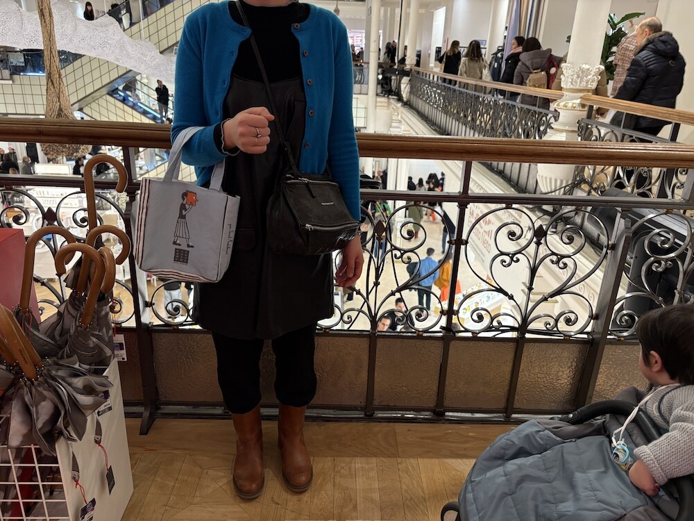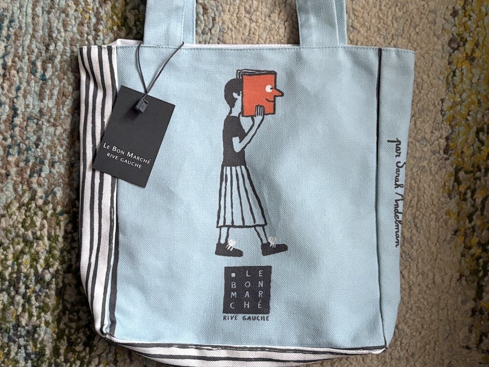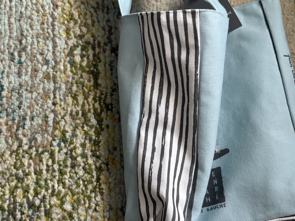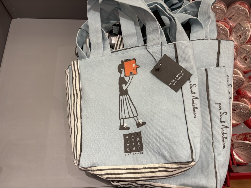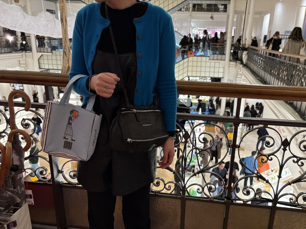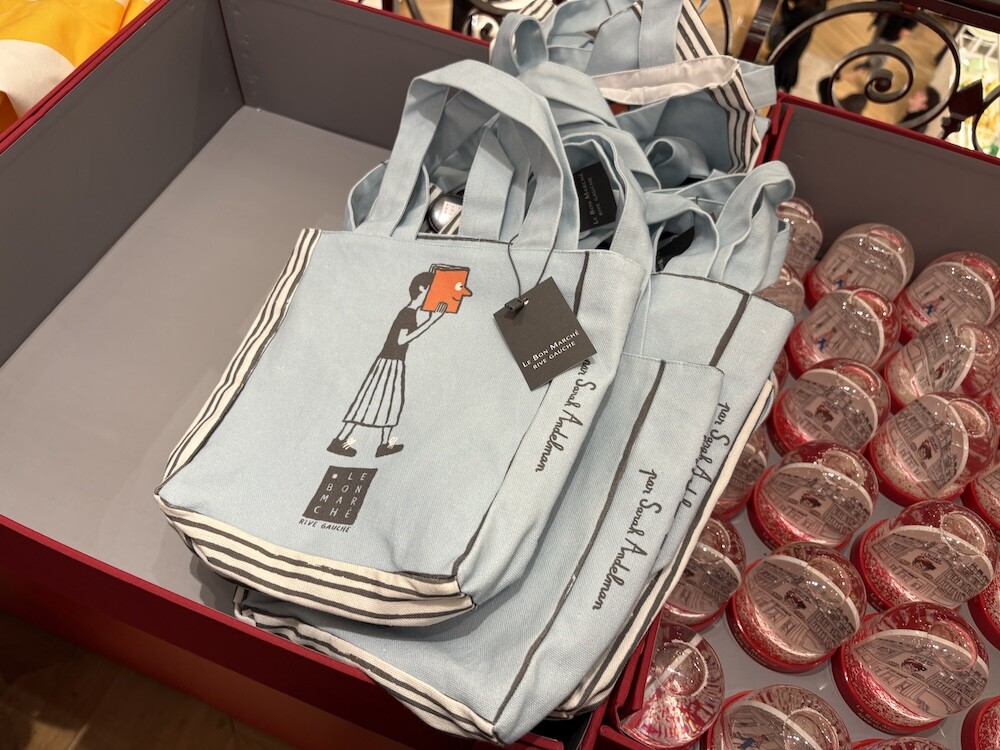 봉막쉐에서 열렸던 장 줄리앙(Jean Jullien)의 전시, 미정빠쥬 Mise En Page 팝업에서 한정으로 나온 미니 에코백입니다. 가방의 모양 자체가 책처럼 생겨서 귀여운데요. 손으로 들고 있으면 꼭 책을 들고 있는 것처럼 책의 종이 같은 느낌을 옆면에 그려 놓아서 재치있어요. 책을 좋아하시는 분들께서 좋아하시는 책 두세 권 넣어 들고 다니시기 딱 좋은 사이즈예요.