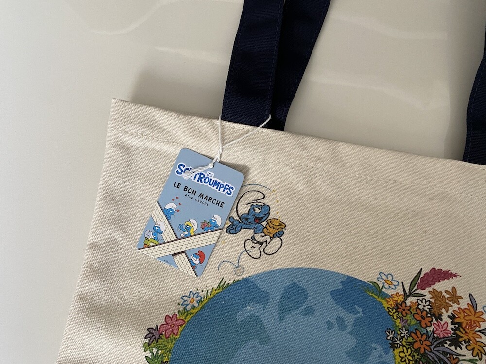 봉막쉐(Le Bon Marché) 백화점의 스머프 에코백 꽃입니다.