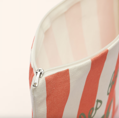 여름에 잘 어울리는 로즈, 노랑, 올리브색의 조합으로 만들어진 줄무늬 파우치로, 봉막쉐에서 여름 제품을 만들 때 자주 사용하는 색상들이에요. 이 파우치를 보면 뜨거운 햇살 아래 누워 있는 제 모습을 상상하게 돼요. 얼른 여름이 오면 좋겠네요!