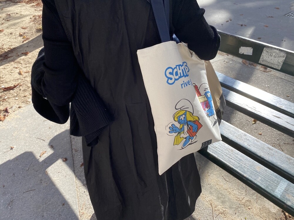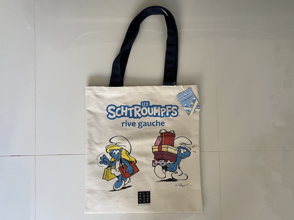 이 에코백은 벨기에 이벤트를 위해 한정판으로 나온 제품이에요. 앞뒷면 그림이 달라서 두가지 디자인으로 활용할 수 있어서 너무 좋고, 원단이 튼튼해서 무거운 물건을 넣어 다니기에도 좋아요. 쇼핑을 한 스머프 커플의 서로 다른 표정도, 스머프 마을의 버섯집 백화점의 모습도 너무 예쁘게 표현되어 있어, 그림을 보고 있으면 기분까지 좋아지는 것 같아요. 각 그림엔 스머프를 그린 작가의 싸인까지 있네요.