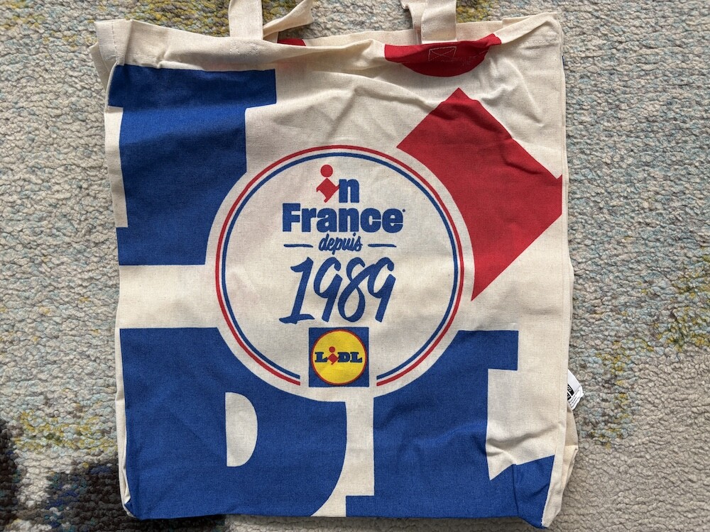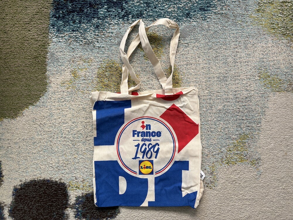 리들(LIDL)은 서유럽 전반에서 볼 수 있는 독일 마트 체인이에요. 리들 프랑스가 얼마 전부터 본격적으로, 생활용품 및 장난감 등 생활 전반에 필요한 물건들을 온라인 사이트에서 판매하기 시작했거든요. 이건 리들 마트에서 판매되는 장바구니용 에코백입니다.