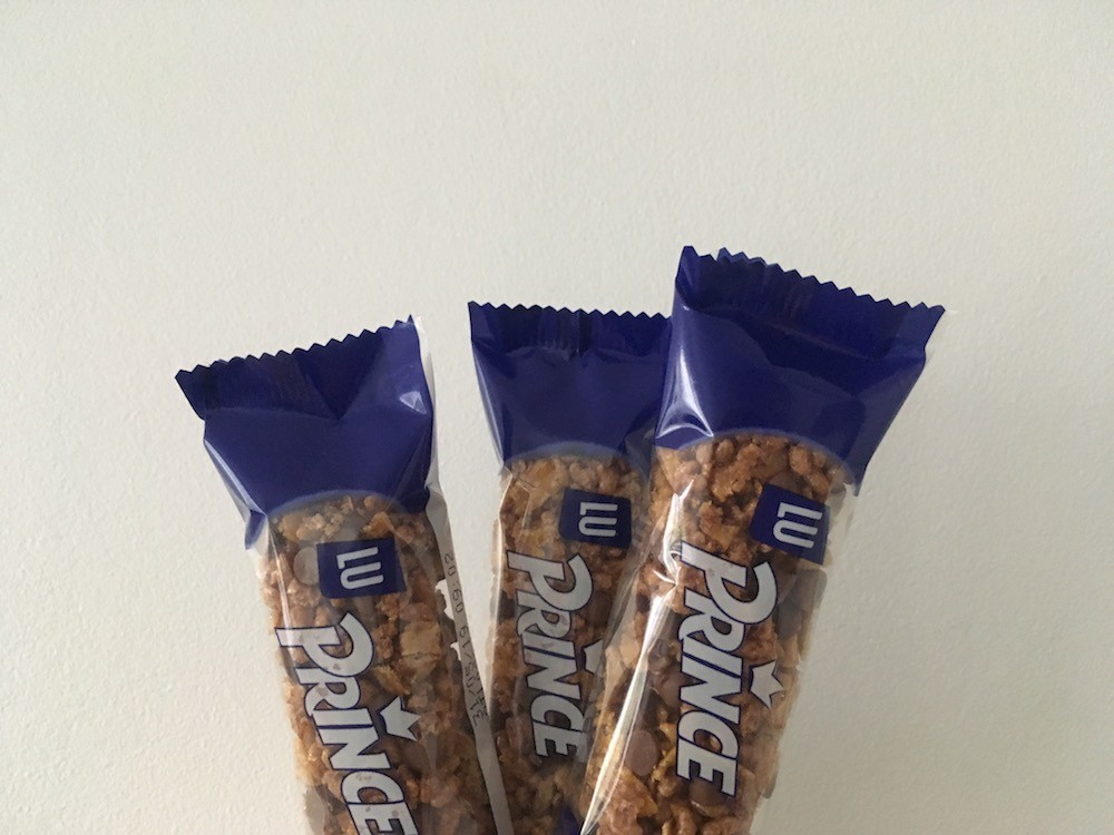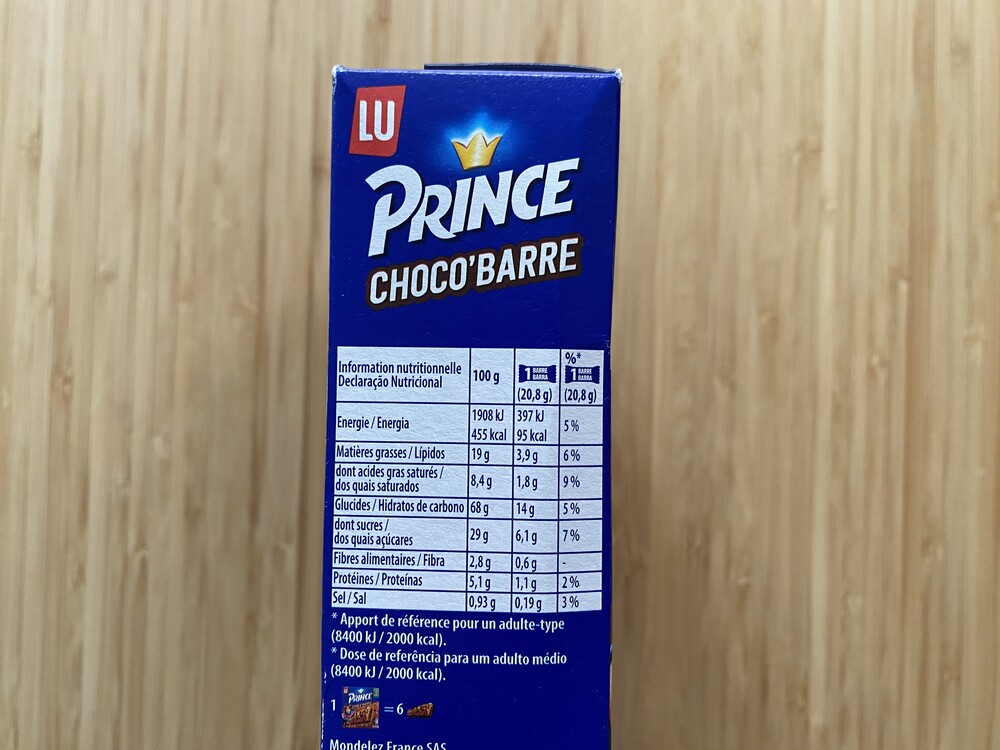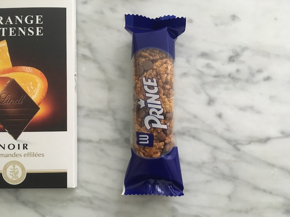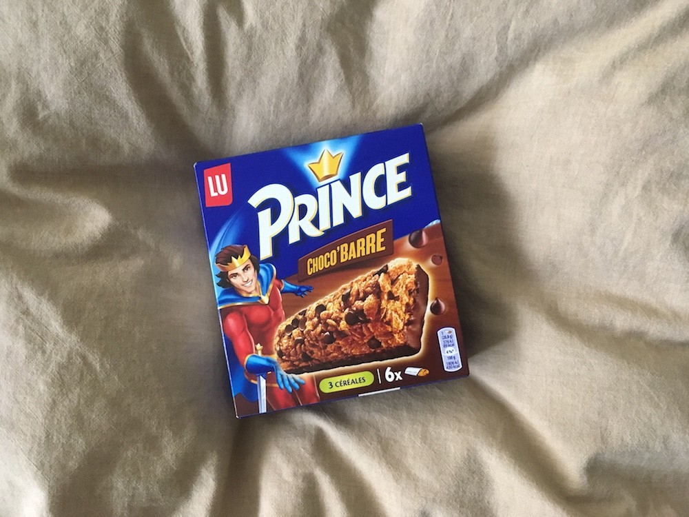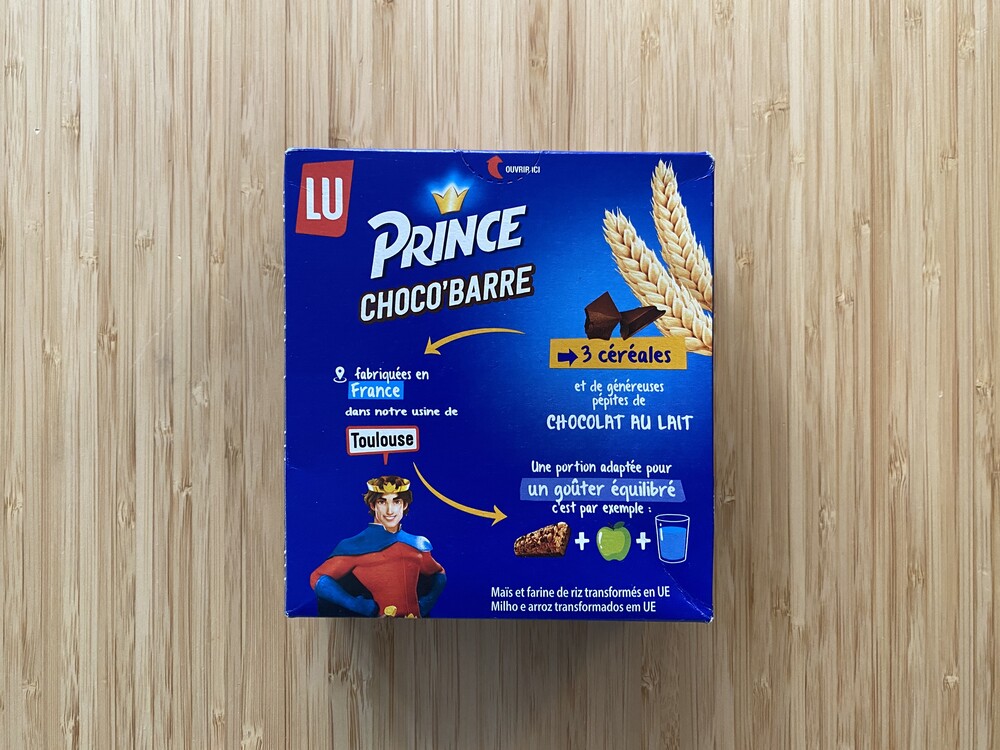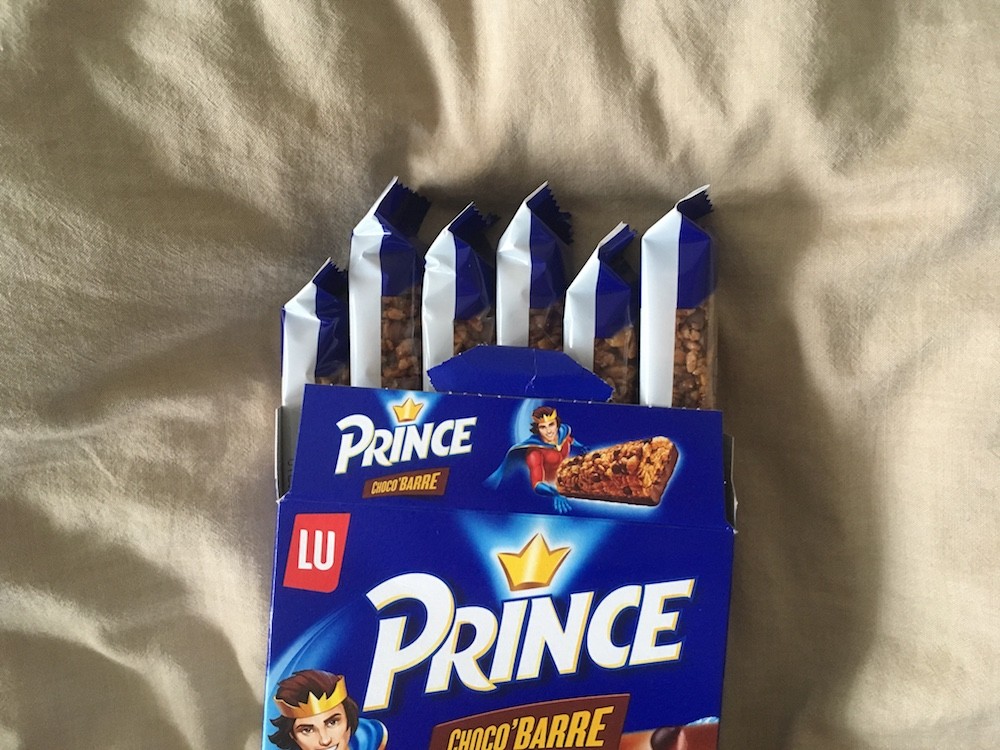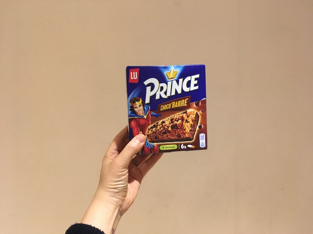 프랑스에서는 학교가 끝나는 오후 4시쯤 아이들에게 구떼(goûter)라고 부르는 간식을 주는데요. 보통 초콜릿이 들어간 과자를 많이 줘요. 이 왕자님 초코바 하나와 사과 한 개, 우유 한 잔이면 영양이 잘 갖춰진 구떼가 된다고 써져 있네요.