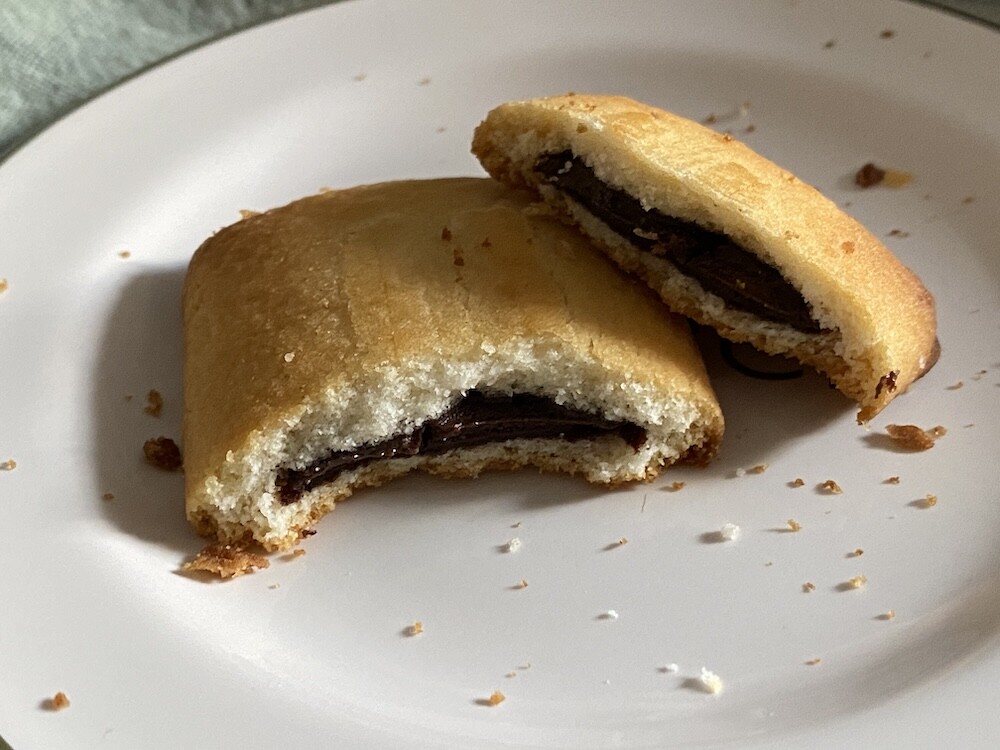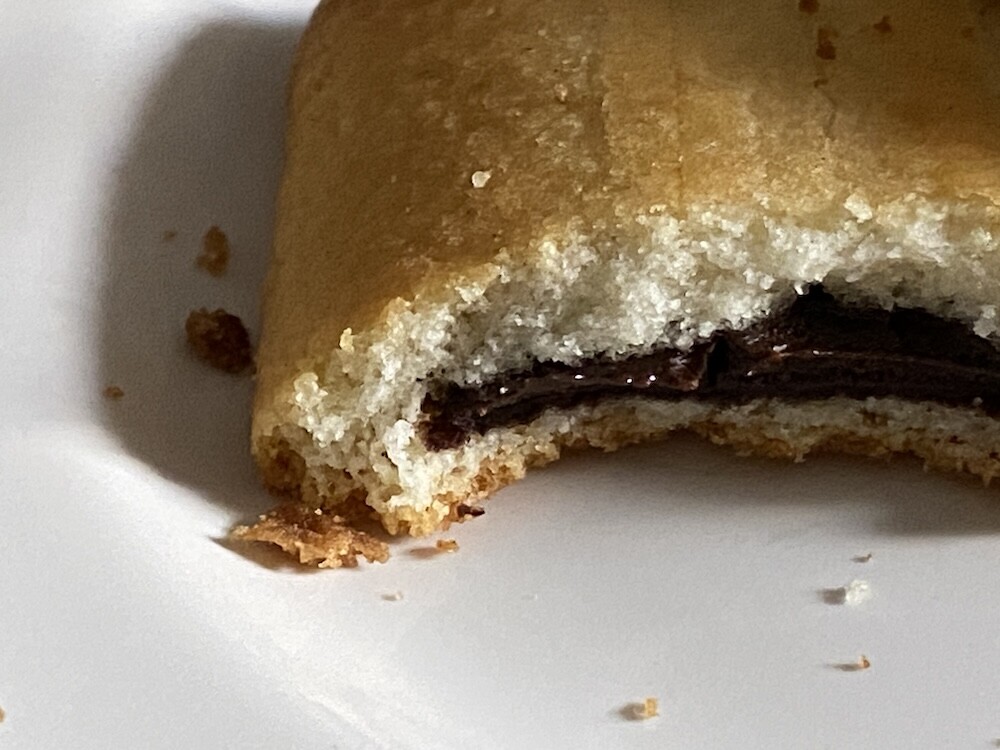 식감이 정말 특이한 과자예요. 겉은 부드러운 사블레인데 안쪽에 아주 얇고 아삭한 판이 들어 있는 느낌이에요. 꼭 간장 게장의 얇은 껍데기를 씹을 때처럼 오독오독한 식감이 있는데 그게 참 독특하고 맛있어요. 이 과자는 직접 드셔 봐야 어떤 식감인지 아실 수 있을 거예요! 안쪽의 초콜릿은 그냥 초콜릿 같은 느낌이 아니라 진득한 크림과 비슷해요. 여러 모로 한국에서는 맛보기 힘든 제품이라 생각됩니다.