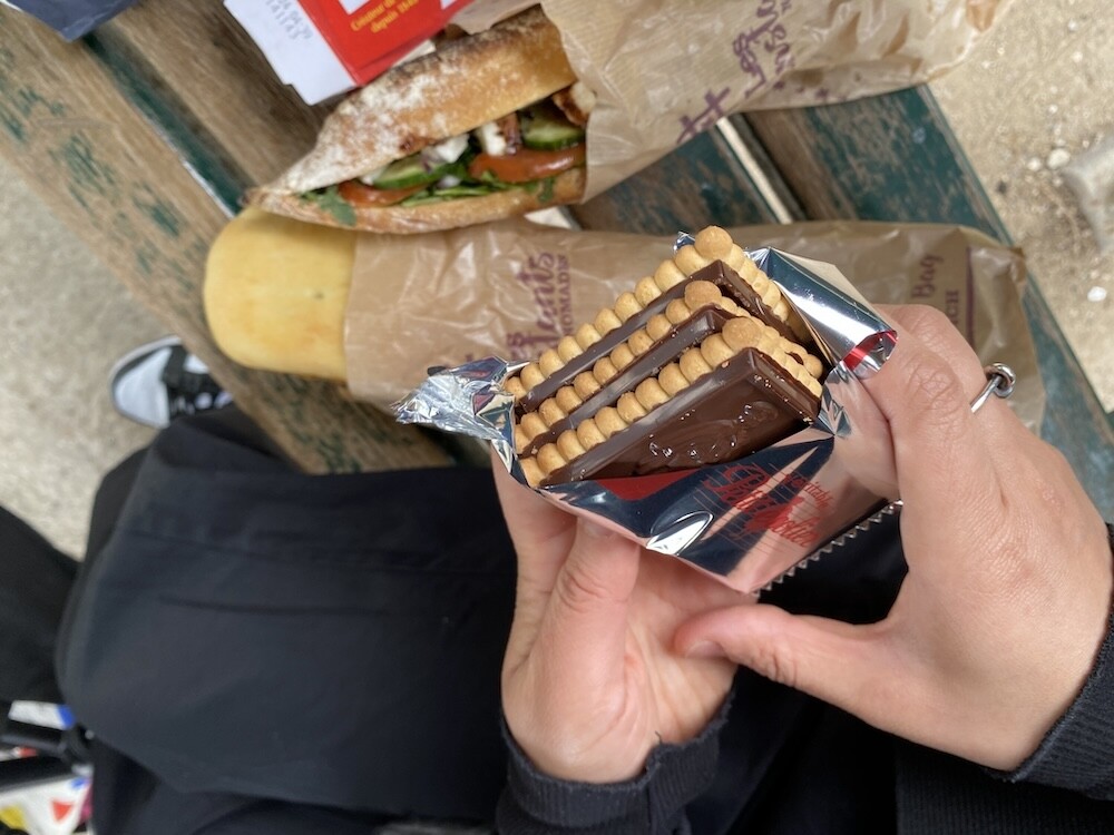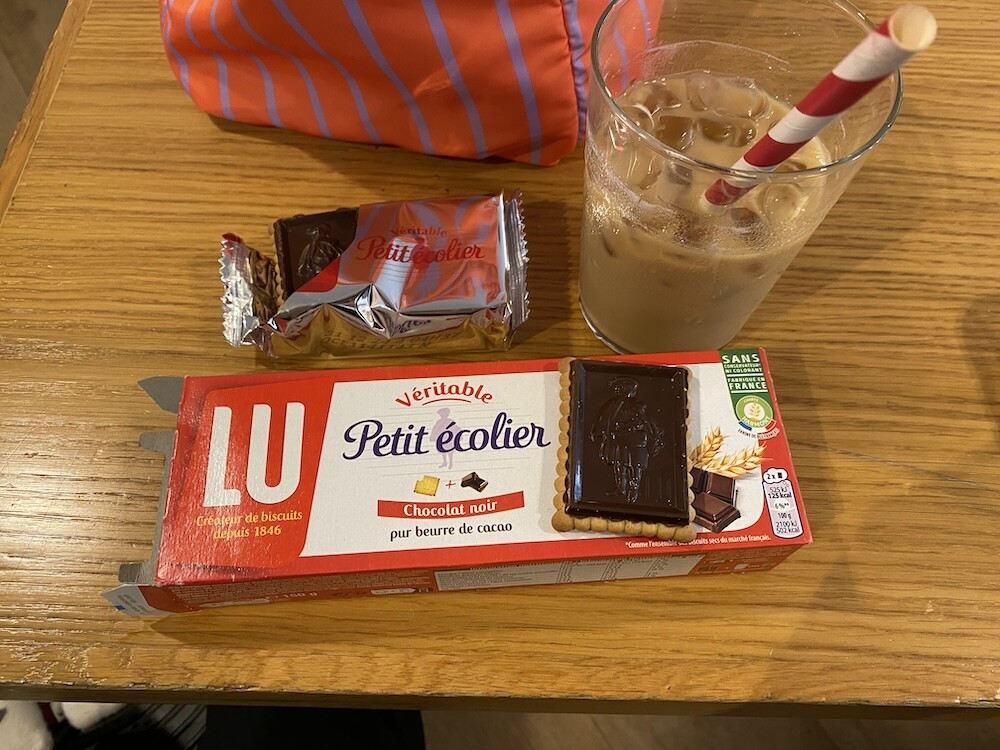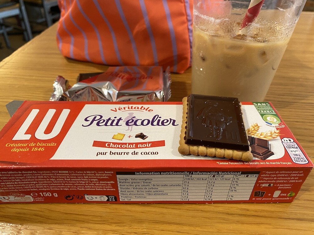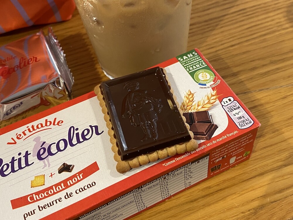 버터 비스킷 위에 다크초콜릿이 올라간 과자예요. 이 쁘띠 떼꼴리에 비스킷이 뤼에서 나오는 제품들 중 가장 유명한 과자일 것 같은데, 밀크초콜릿은 쉽게 구할 수 있지만 다크초콜릿은 그렇지 않아요. 그래서 다크초콜릿만 진행합니다. 고소한 버터 과자와 진한 다크초콜릿의 조화, 맛없으면 이상하죠.
