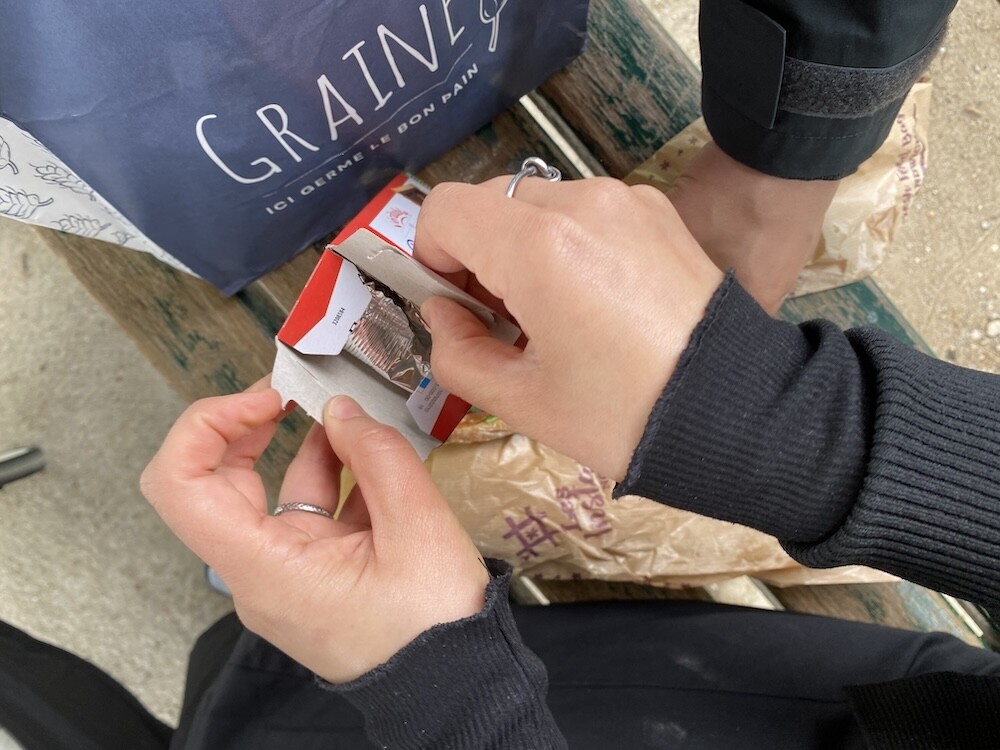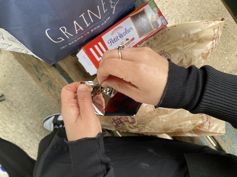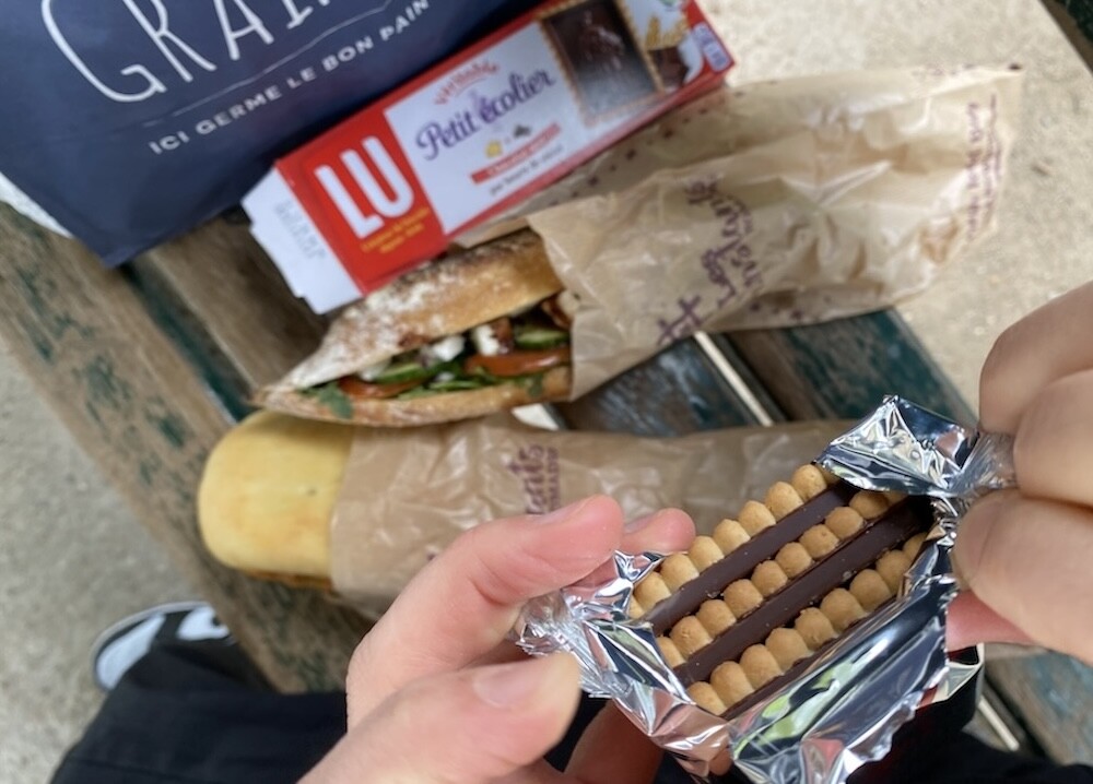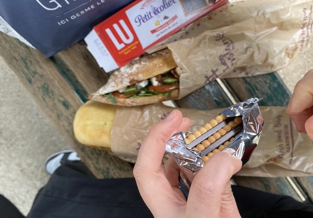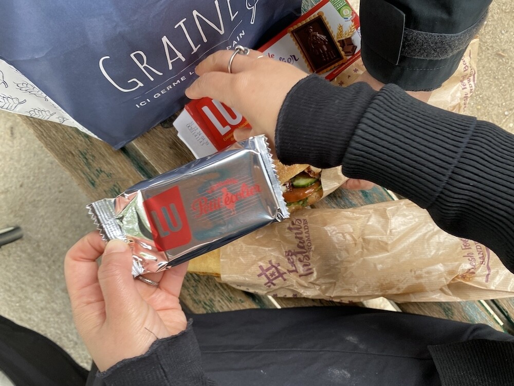 버터 비스킷 위에 다크초콜릿이 올라간 과자예요. 이 쁘띠 떼꼴리에 비스킷이 뤼에서 나오는 제품들 중 가장 유명한 과자일 것 같은데, 밀크초콜릿은 쉽게 구할 수 있지만 다크초콜릿은 그렇지 않아요. 그래서 다크초콜릿만 진행합니다. 고소한 버터 과자와 진한 다크초콜릿의 조화, 맛없으면 이상하죠.