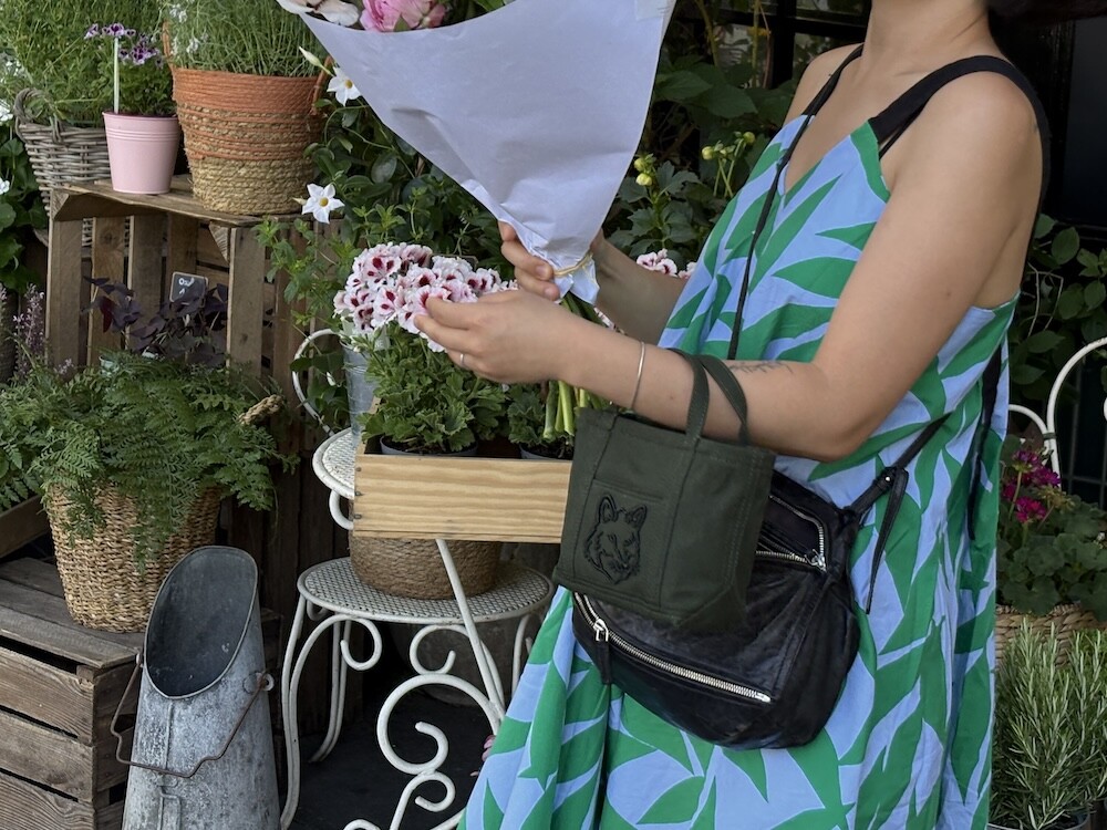 가방 앞쪽에는 폭스 헤드 자수가 놓여 있는데요. 이게 일반적인 평평한 자수가 아니라, 안쪽에 심지를 넣고 두툼하게 자수를 놓은 거라 여우 그림이 확 도드라져서 더 예쁘더라고요. 멀리서 봐도 여우가 눈에 확 보여서 마음에 들었어요.