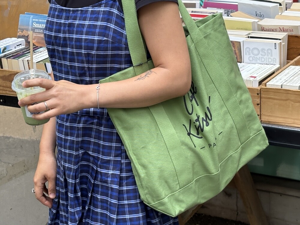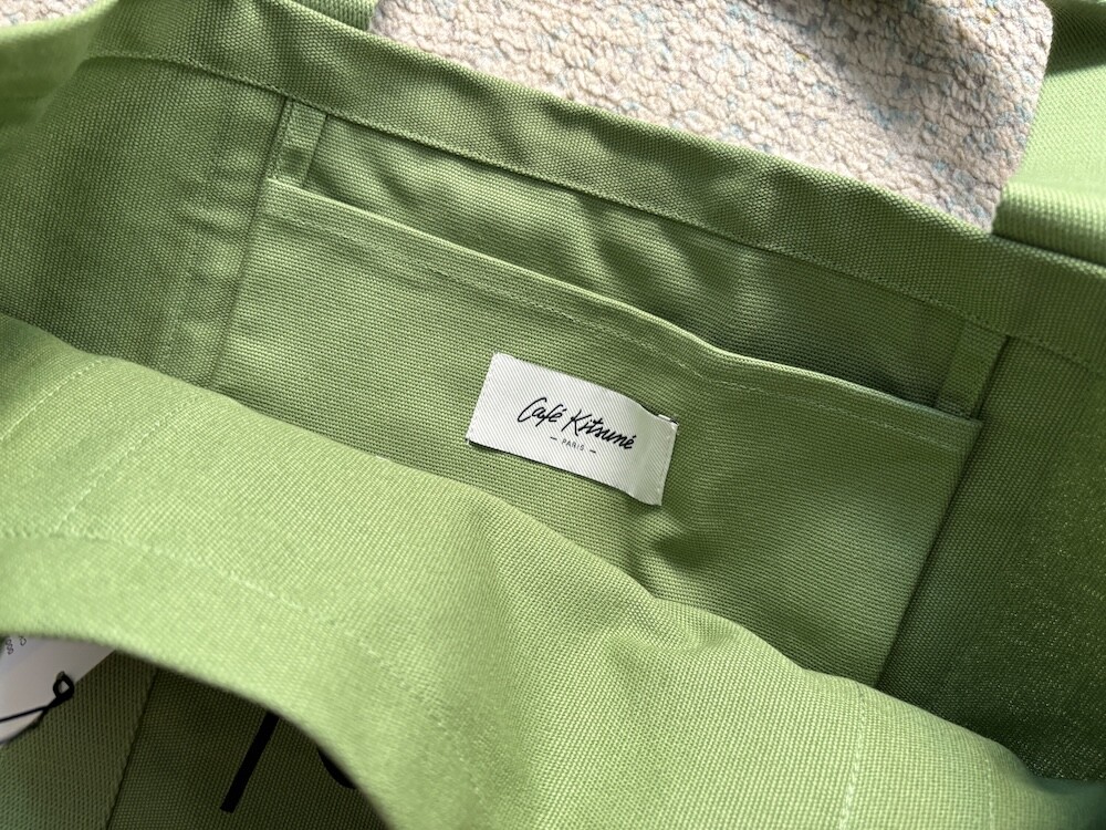 이 가방은 맛차라떼의 색깔을 꼭 닮았어요. 녹차로 물을 들인 것 같은 색감이 너무 예뻐요. 크기가 넉넉해서 물건들을 많이 담을 수 있고 안쪽에는 작은 주머니가 달려 있어서 작은 물건들을 따로 넣을 수도 있어서 편해요. 그림 없이 카페 키츠네의 로고만 깔끔하게 프린트된 것도 심플하고 좋네요.