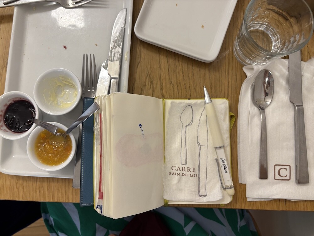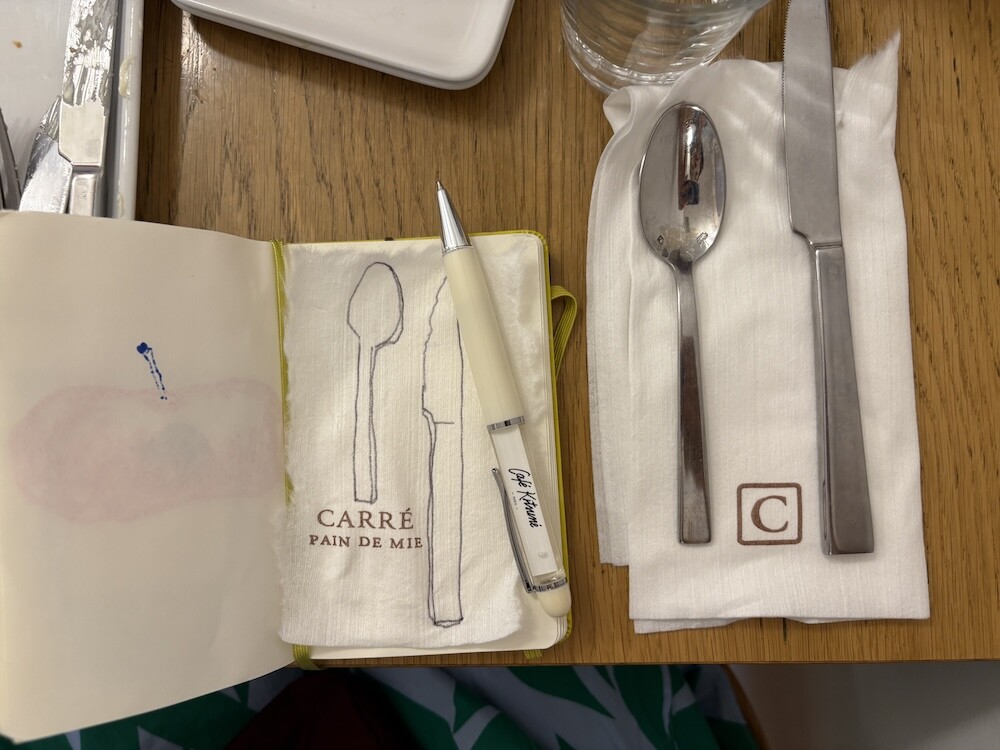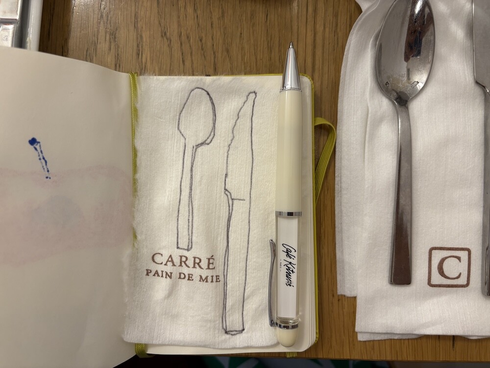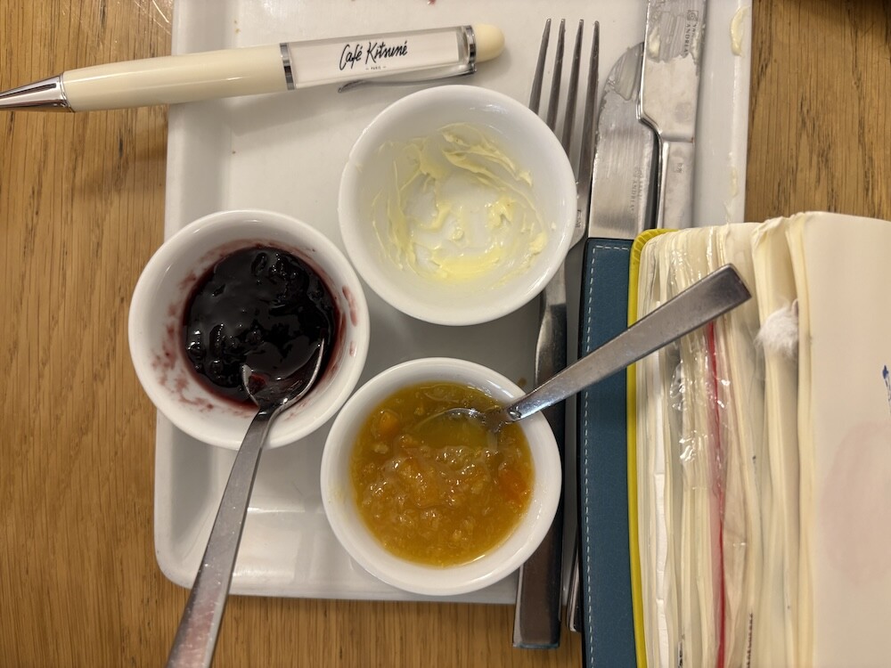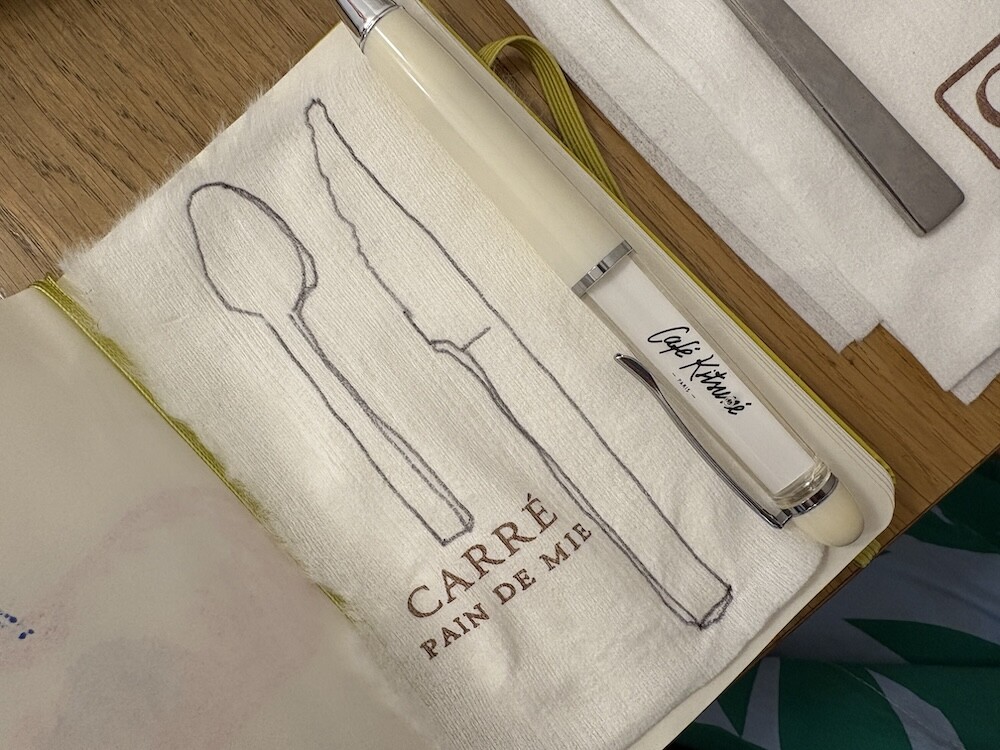 부드럽게 잘 써지는 검정색 볼펜이에요. 미색 바탕의 몸체에 윗부분은 투명한 소재로 되어 있고 그 안에 한쪽 면에는 카페 키츠네 로고가, 한쪽 면에는 여우와 커피 그림이 그려져 있어요. 재미있는 건, 이 투명한 부분의 안쪽이 액체로 채워져 있어서 커피 그림이 움직여요. 그래서 보고 있으면 시간 가는 줄을 모르겠더라고요. 펜의 머리 부분을 부드럽게 돌리면 안에서 펜촉이 나오는 형태의 제품이라 가방에 케이스 없이 넣어 다녀도 펜이 저절로 나와 지저분하게 될 일이 없어서 편했어요.
