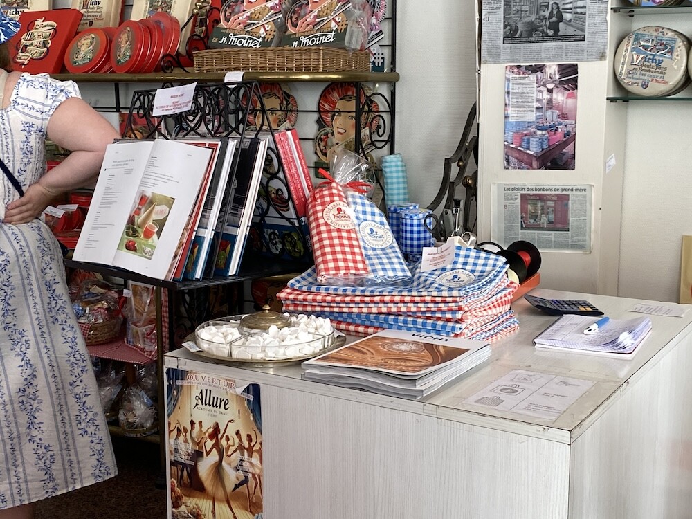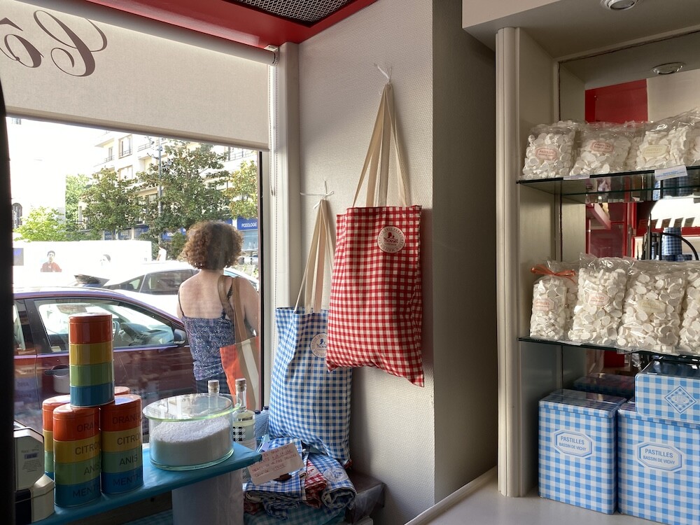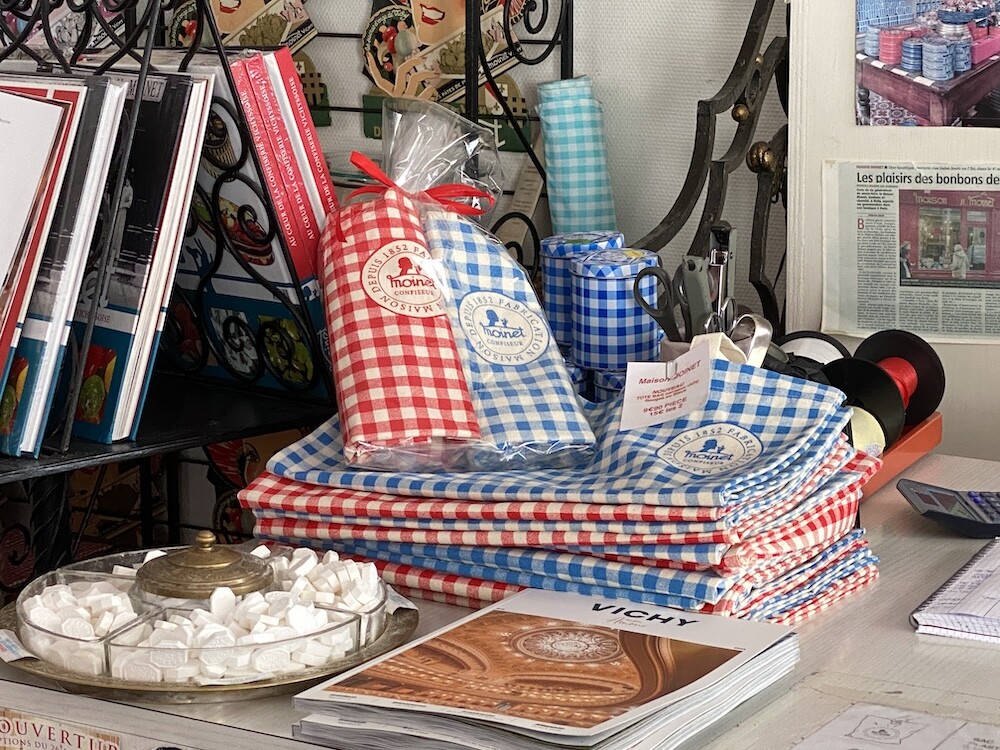 프랑스에서는 깅엄 체크 패턴을 비쉬 체크라고 불러요. 그래서인지 비쉬 지역에 가면 이 체크 무늬 패턴을 여기 저기에서 볼 수 있어요. 특히 다양한 비쉬 민트를 이 체크 무늬 틴 케이스에 담아 파는데 그게 또 엄청 귀엽고 예뻐요.