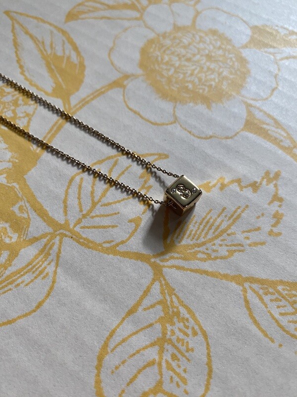 주사위 모양의 펜던트에 숫자가 음각으로 새겨져 있는 목걸이입니다. 각 면에는 숫자 외에도 다양한 모양들이 새겨져 있고 크리스탈이 박혀 있어요. 좋아하는 숫자를 골라 부적처럼 착용하고 다니시면 기분이 좋을 거예요. 목걸이의 끈 길이를 두 가지로 조절할 수 있어서 원하시는 느낌으로 해 주시면 좋아요.