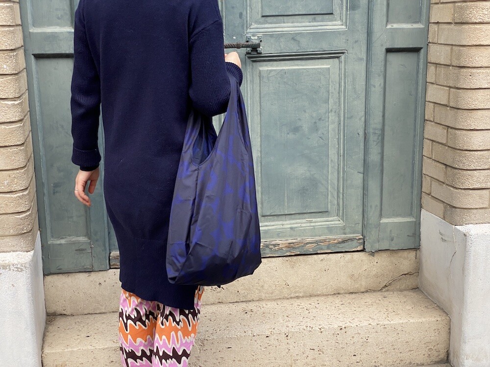 1964년에 만들어진 마리메꼬의 대표 패턴인 우니꼬가 큼지막하게 들어간 이 스마트백은 착착 접에 가방에 넣고 다니다가 필요한 순간에 쏙 꺼내 사용할 수 있는 가방이에요. 모양에 각이 잡혀있지 않은 가방이라 물건을 이것저것 막 집어넣어도 모양이 예쁘고, 박음질이 튼튼해서 내구성도 좋더라고요.