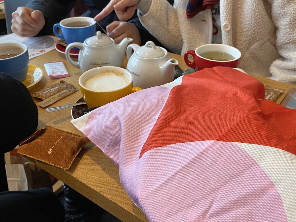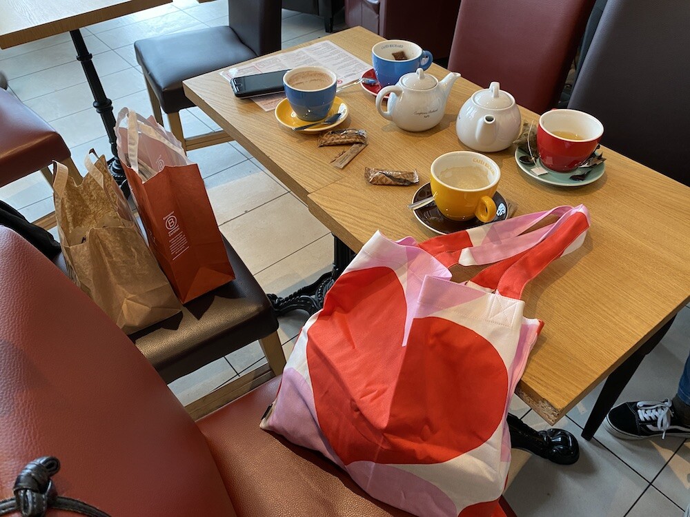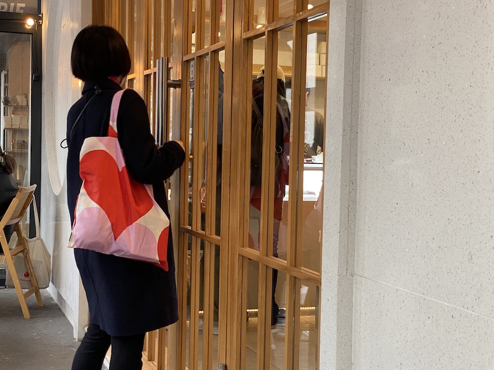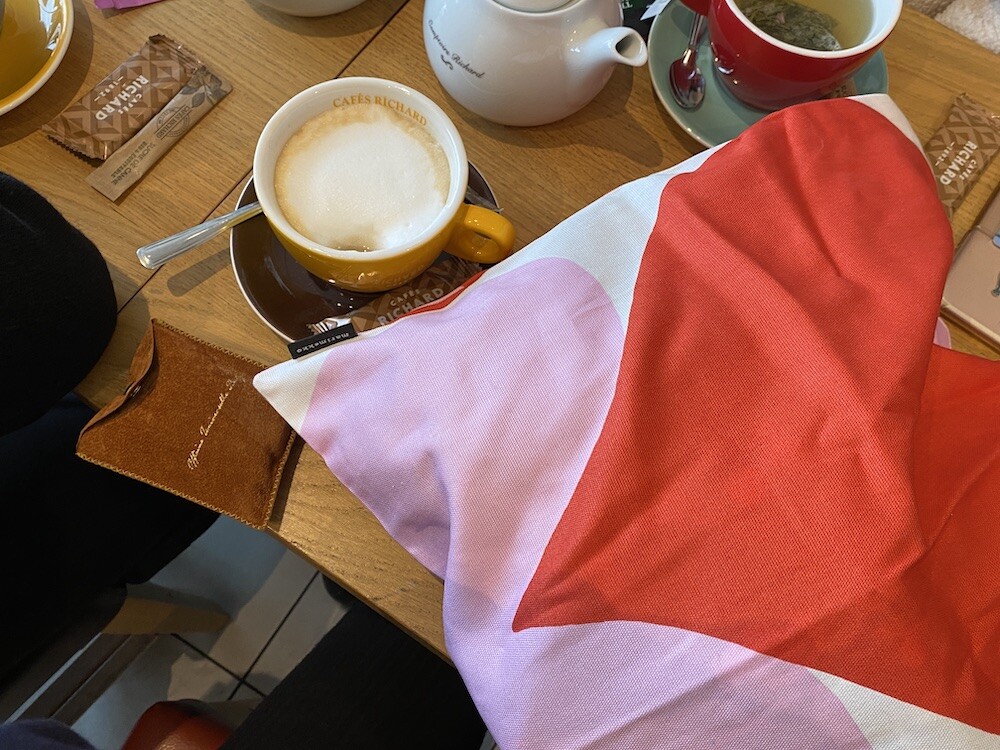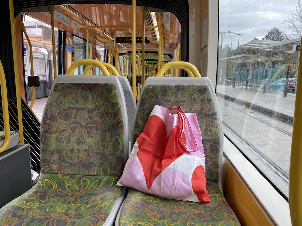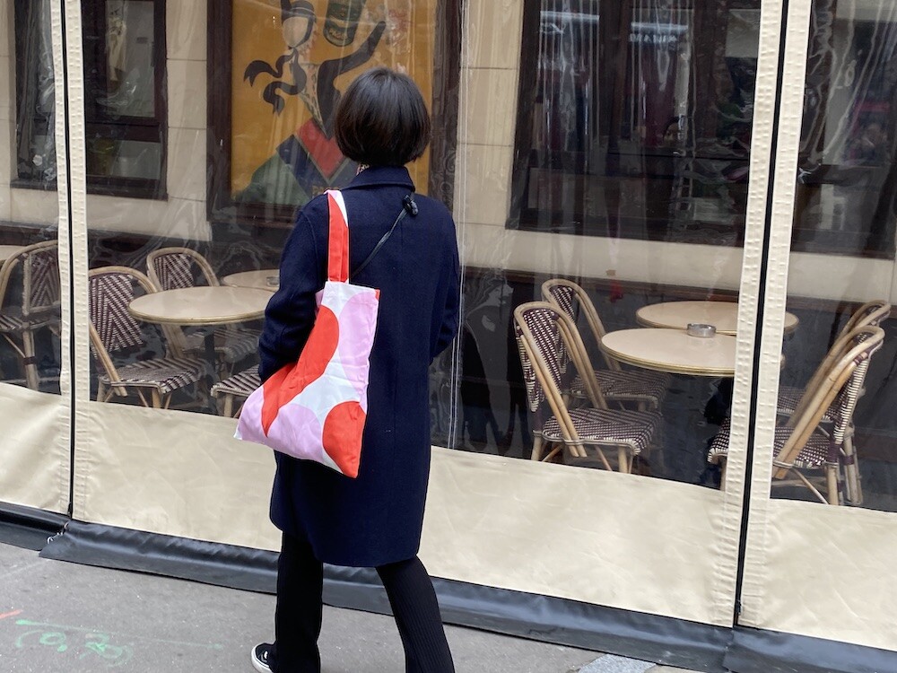 빨강색과 분홍색의 하트가 가득한 에코백이에요. 큼지막한 하트가 잔뜩 그려진 가방으로, 메는 것만으로도 기분이 좋아지는 것 같은 느낌이에요. 특히 마리메꼬 제품들은 바느질 퀄리티가 너무 좋아요. 이렇게 잘 만든 에코백은 오래오래 쓸 수 있어서 참 좋더라고요.