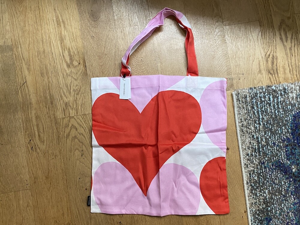 마리메꼬(marimekko)의 시데메트 Sydämet 하트 에코백입니다.