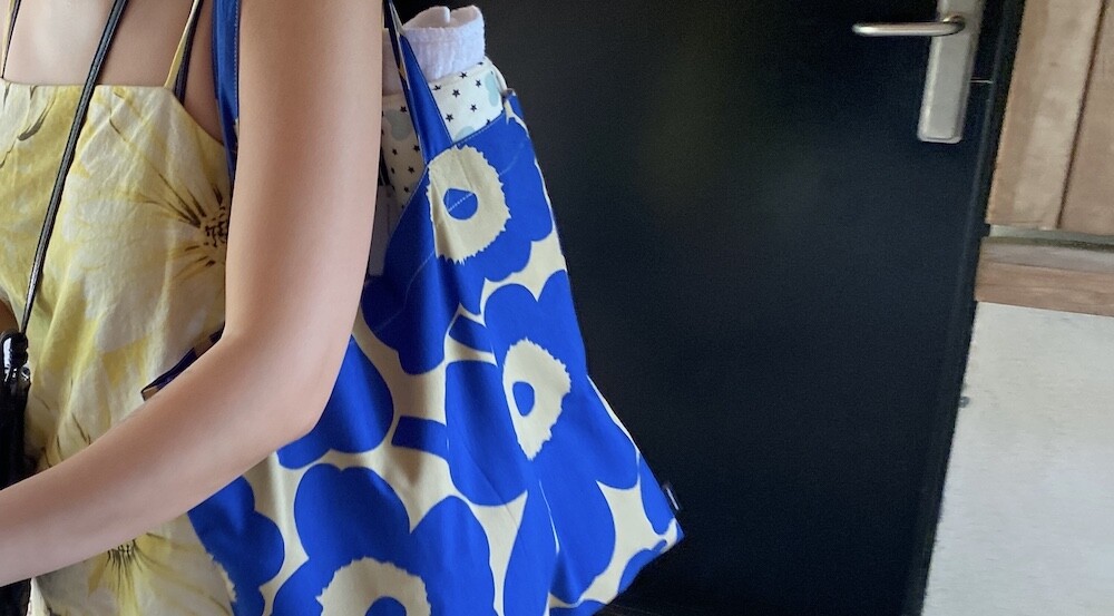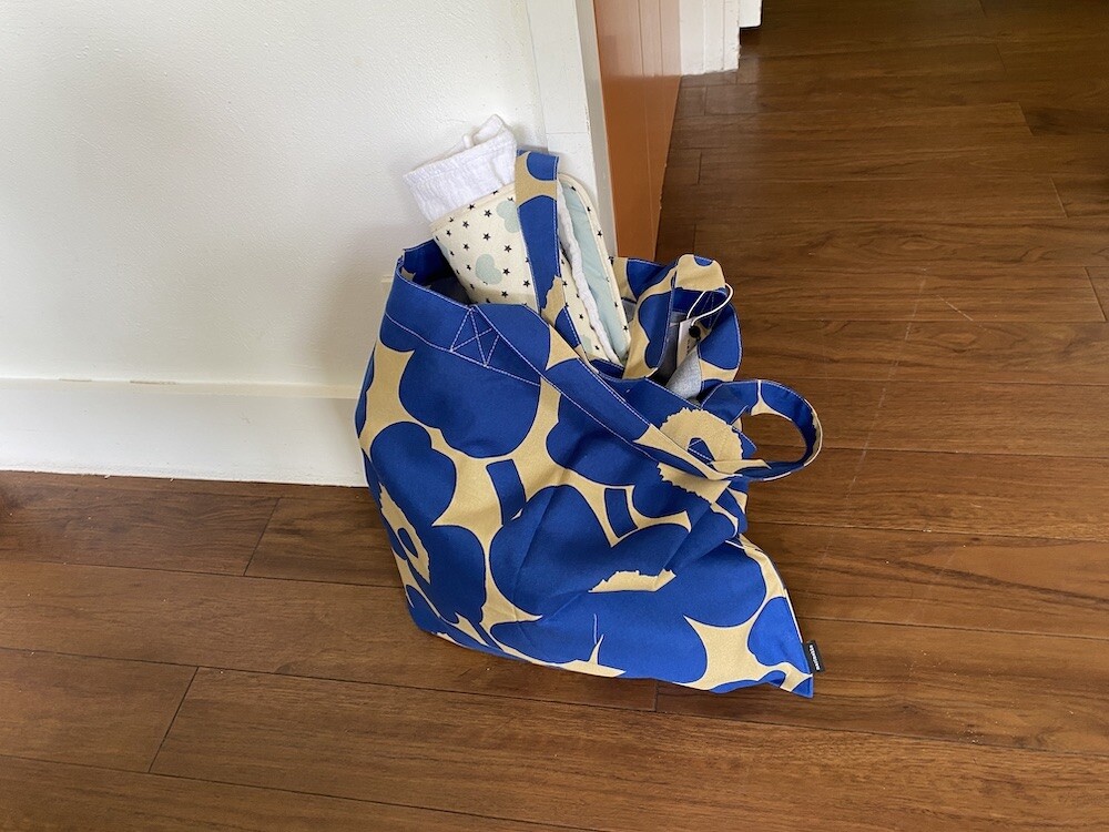 마리메꼬의 대표 패턴인 우니꼬가 큼지막하게 들어간 에코백이에요. 마리메꼬 하면 첫 번째로 떠오르는 패턴으로 만들어진 가방으로, 파랑색과 베이지색의 조화가 너무 예뻐요. 특히 마리메꼬 제품들은 바느질 퀄리티가 너무 좋아요. 이렇게 잘 만든 에코백은 오래오래 쓸 수 있어서 참 좋더라고요.