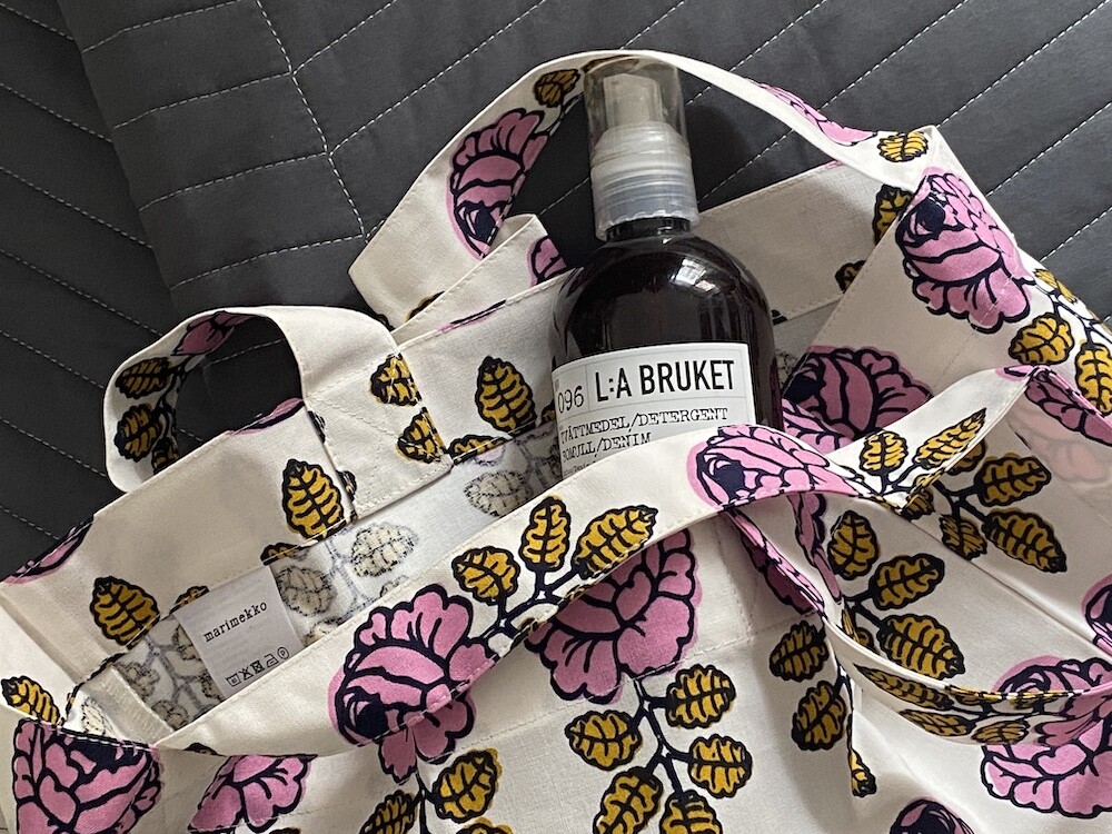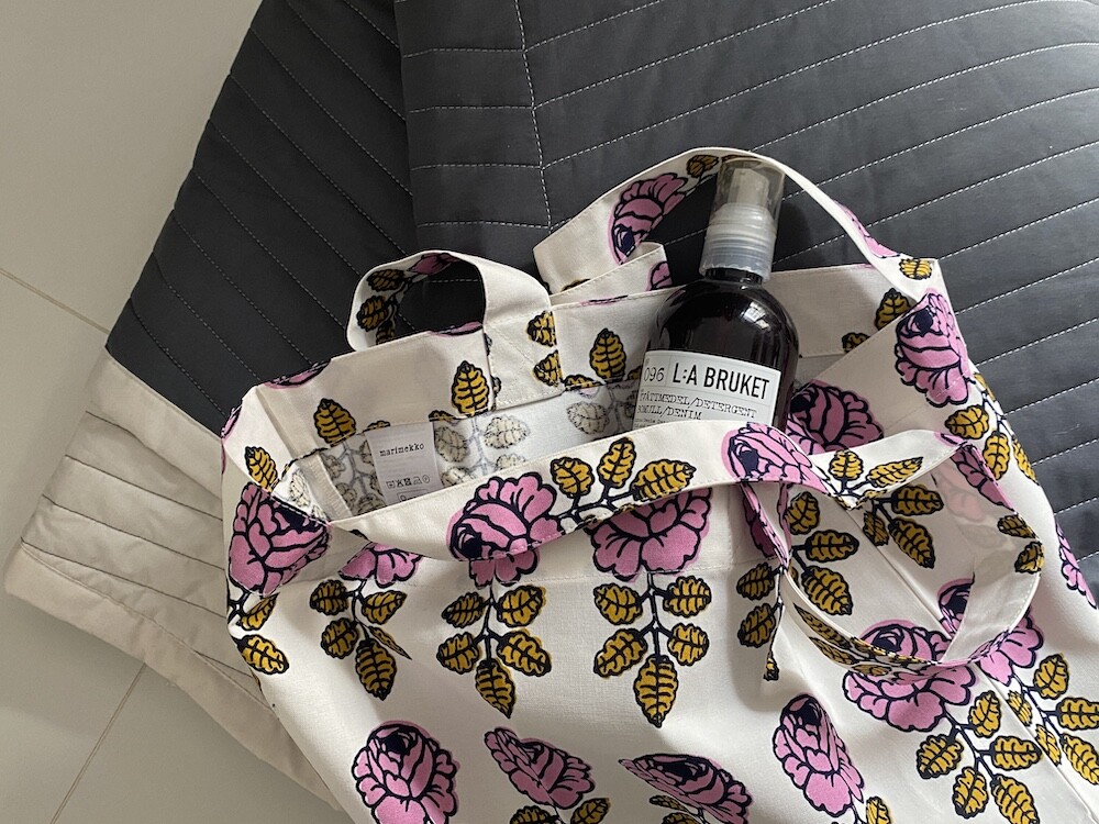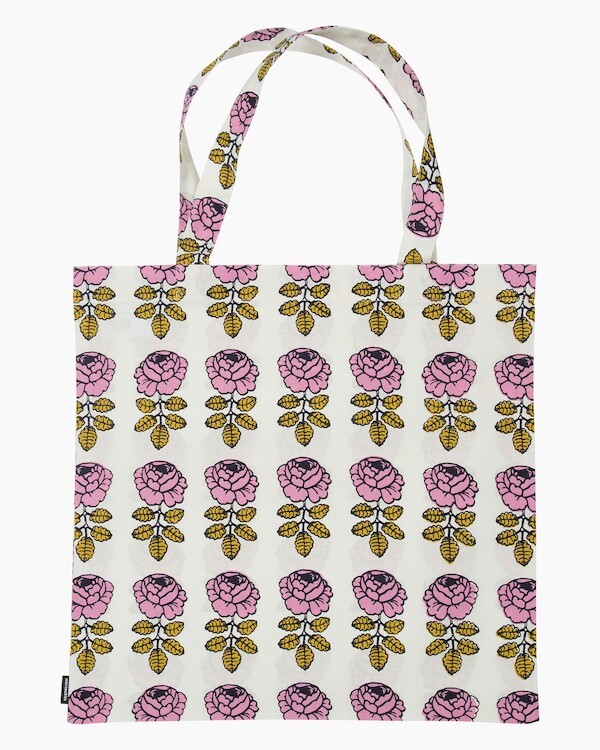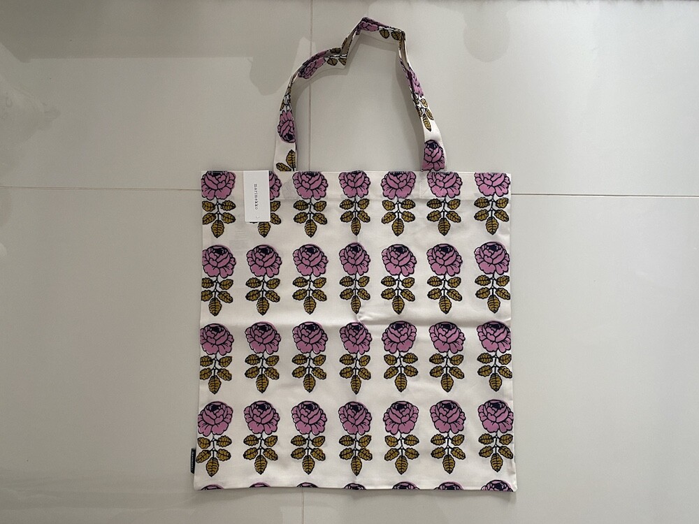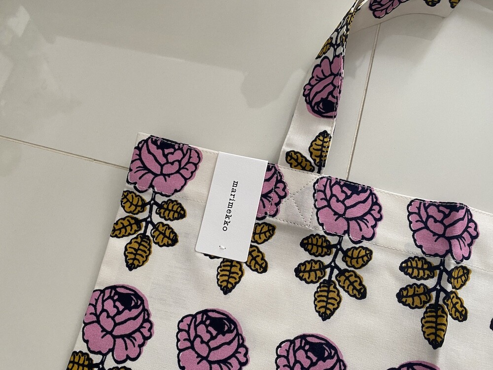 Vihkiruusu 웨딩 로즈 패턴이 규칙적으로 들어간 이 에코백은 패턴이 지루하지 않게 들어가 있는 데다가 색깔이 너무 예뻐요. 특히 마리메꼬 제품들은 바느질 퀄리티가 너무 좋아요. 이렇게 잘 만든 에코백은 오래오래 쓸 수 있어서 참 좋죠.