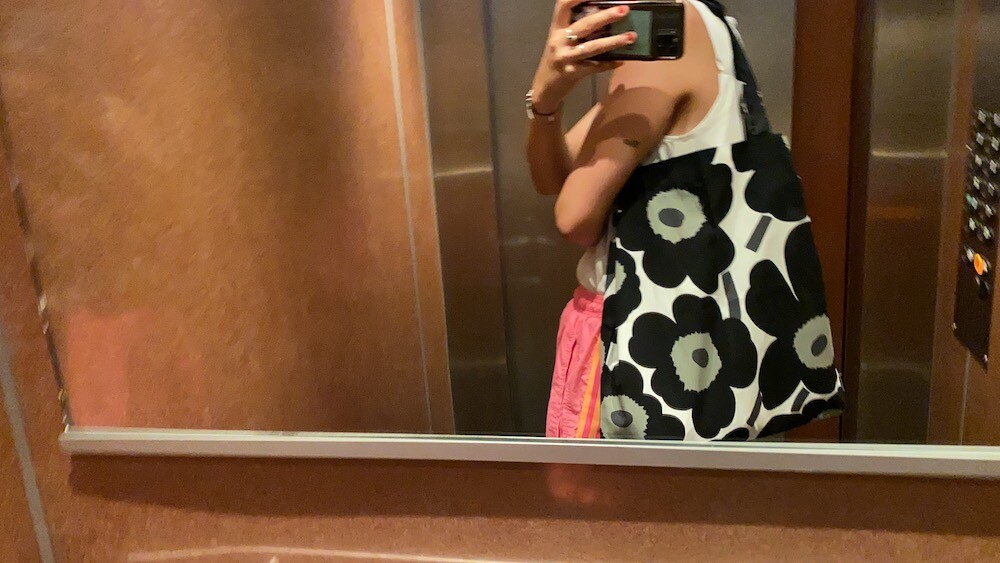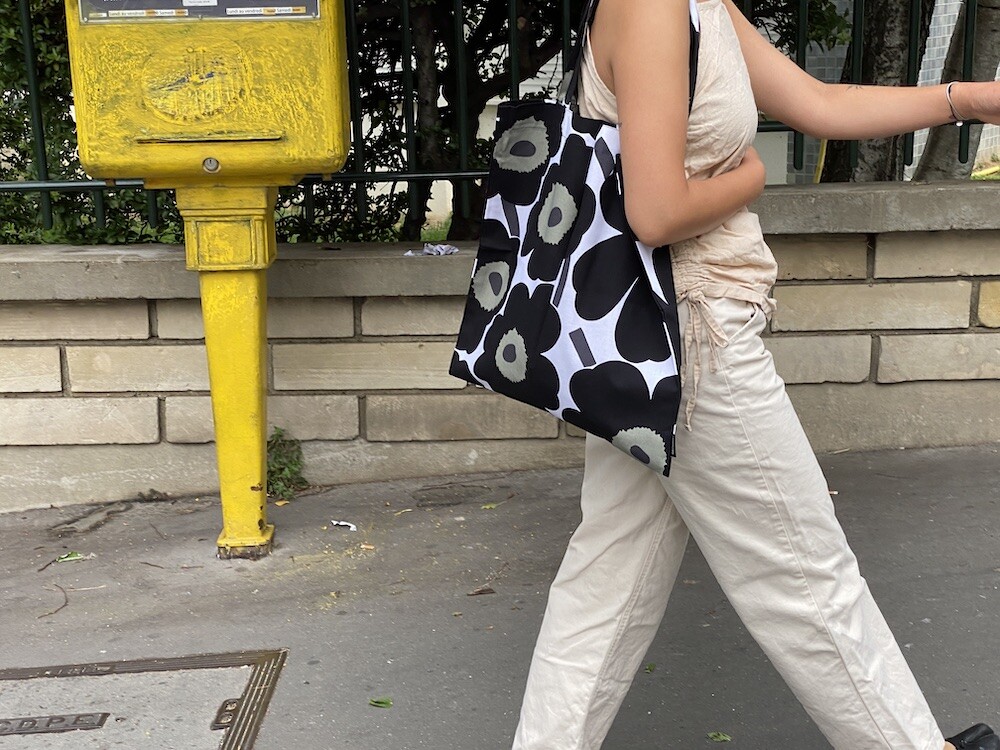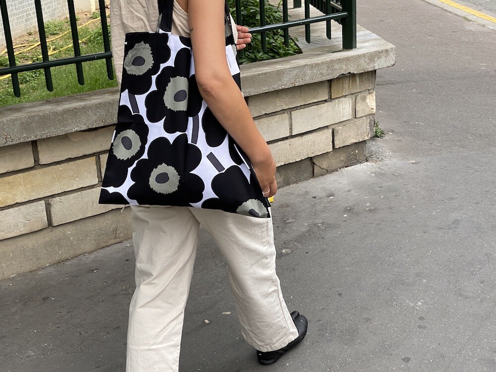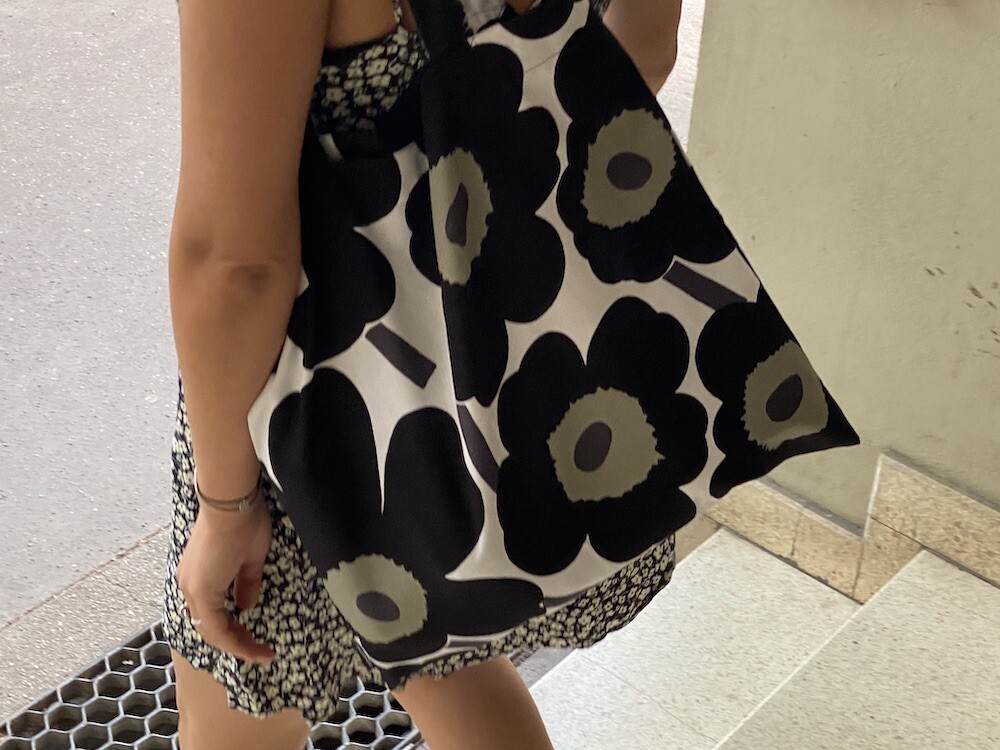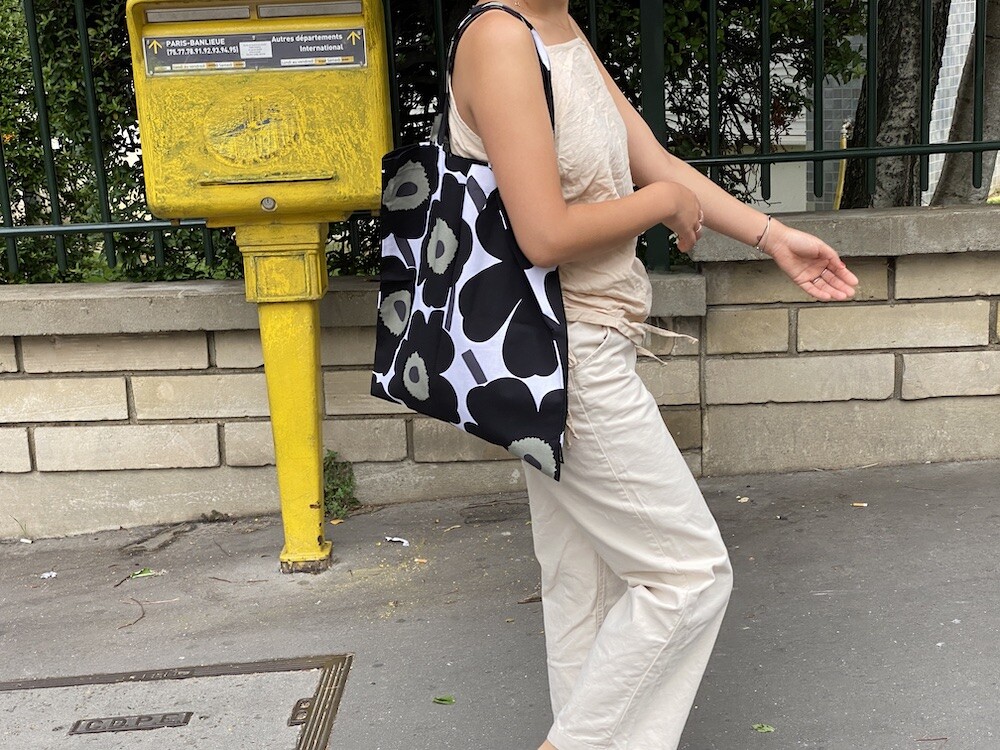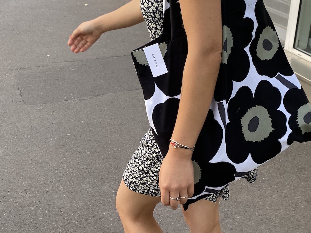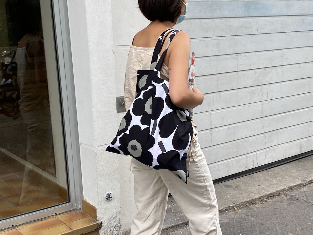 마리메꼬의 대표 패턴인 우니꼬가 큼지막하게 들어간 이 에코백은 검정색이지만 심심한 느낌이 들지 않아서 예뻐요. 특히 마리메꼬 제품들은 바느질 퀄리티가 너무 좋아요. 이렇게 잘 만든 에코백은 오래오래 쓸 수 있어서 참 좋죠.