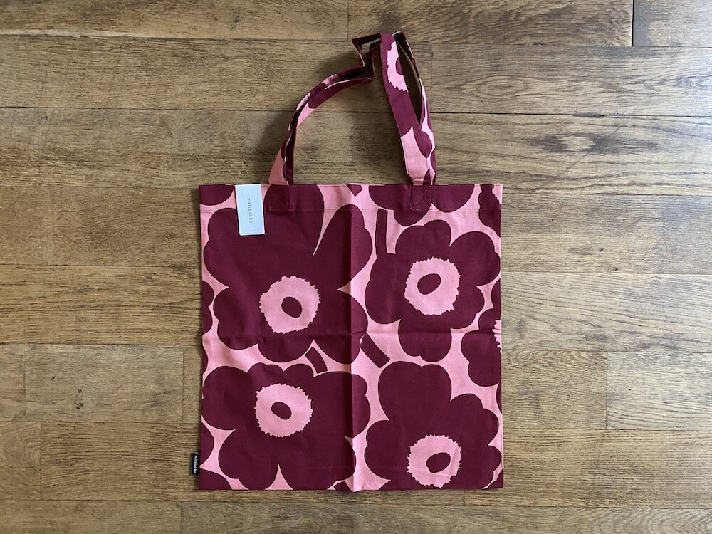 마리메꼬(marimekko)의 핑크+버건디 우니꼬 에코백입니다.