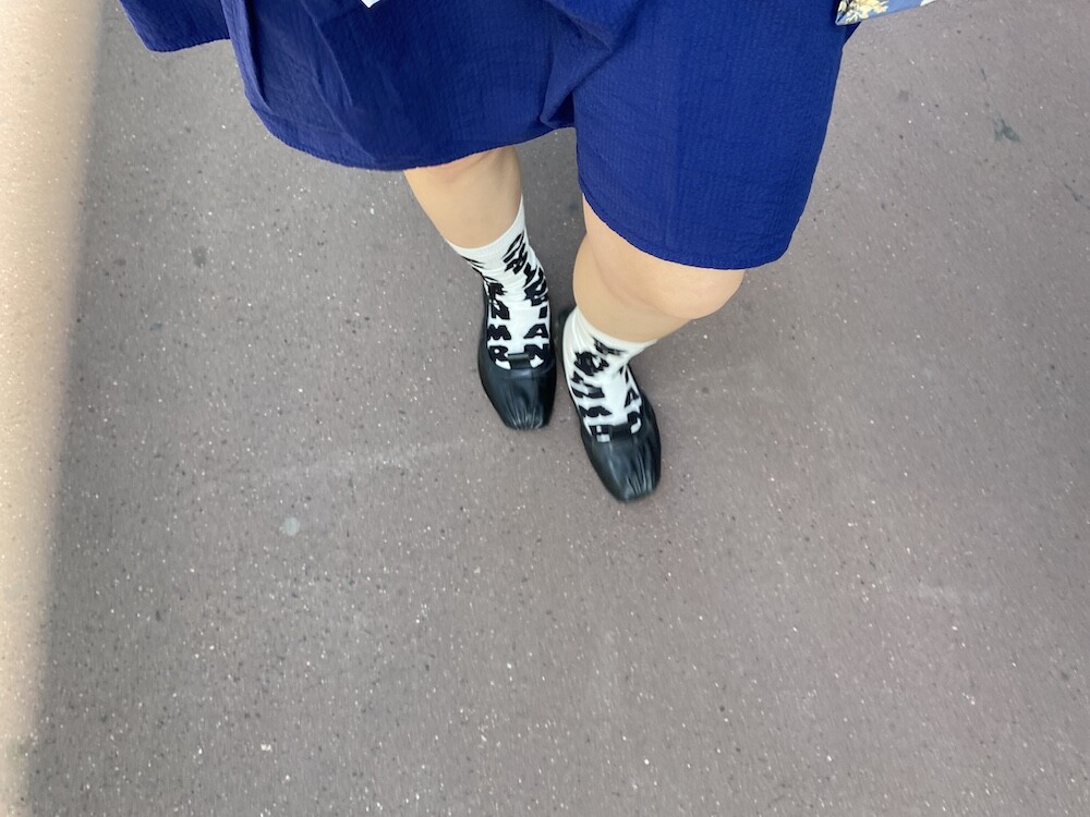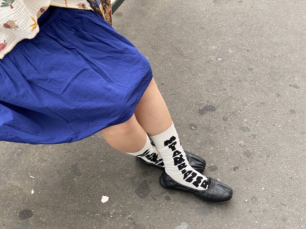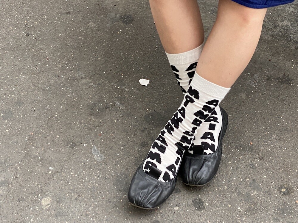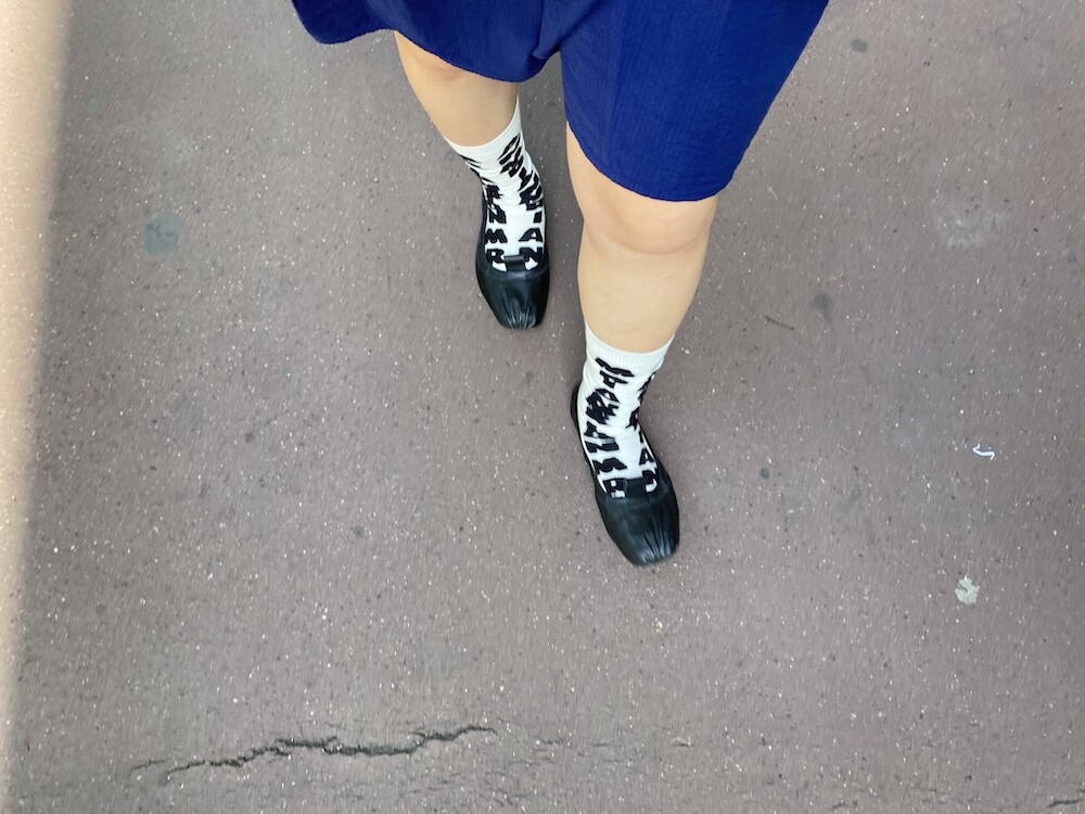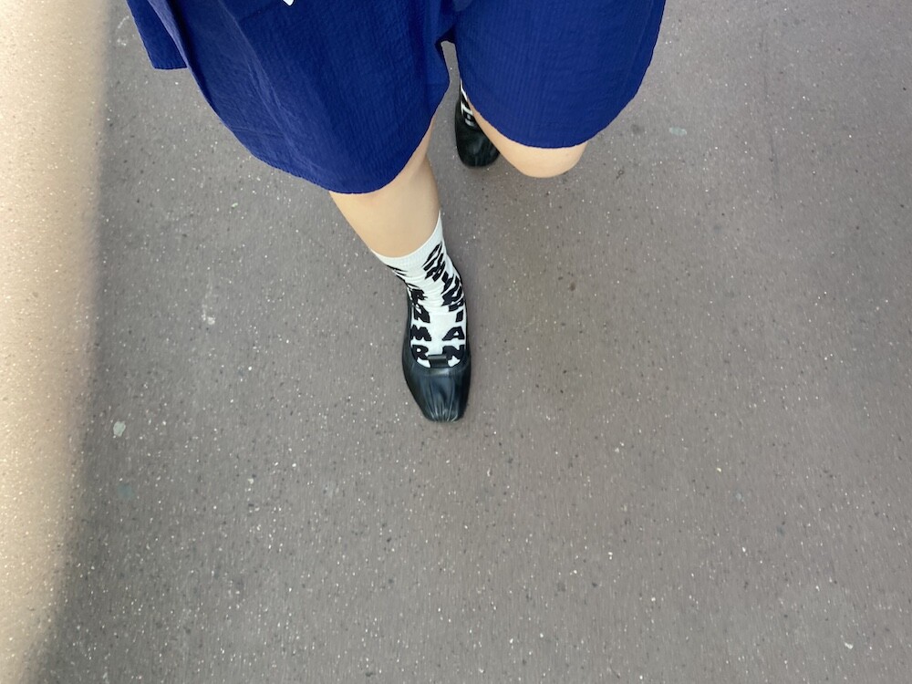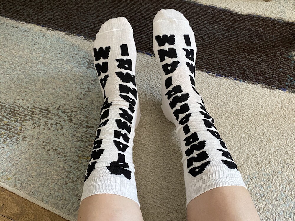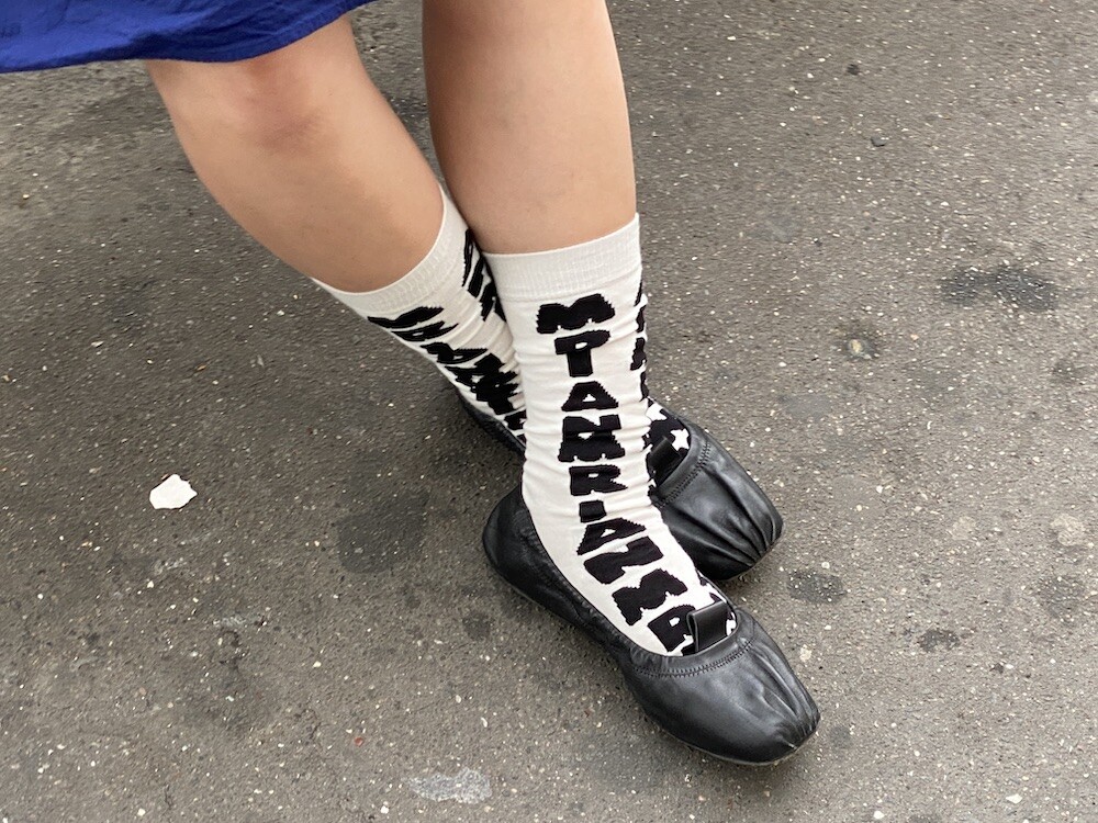 양말의 앞 부분에 MARNI 로고가 써져 있는 양말이에요. 흰색 바탕에 검정색 로고가 적혀 있는데 강렬해 보이지만 코디하면 또 엄청 튀지는 않아서 딱 포인트 주기에 좋더라고요. 원피스에도, 바지에도 잘 어울려요! 종아리 반 정도까지 올라오는 길이감에, 쫀쫀한 밴드로 흘러내리지 않아서 좋아요. 저는 보통 외국 신발 37사이즈를 신는데 이 양말은 조이지 않게 딱 맞았습니다.