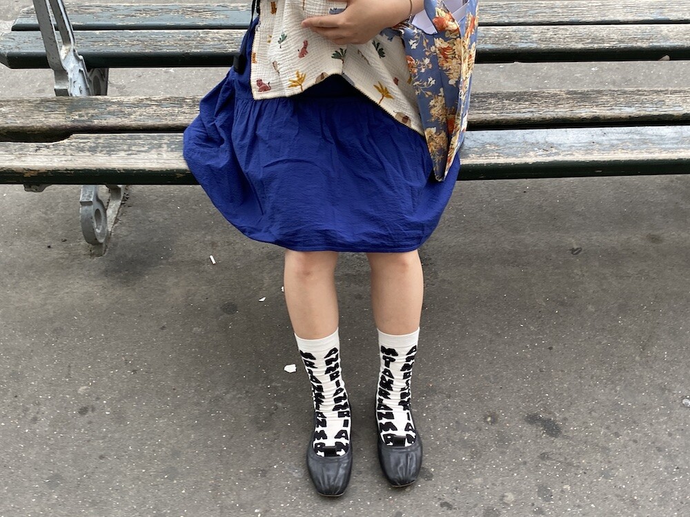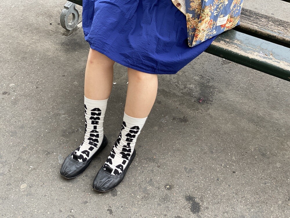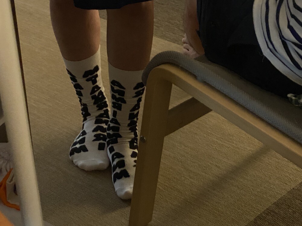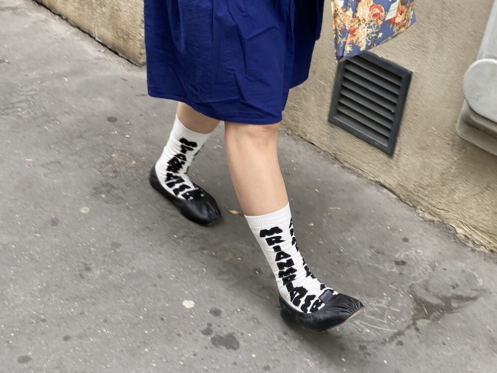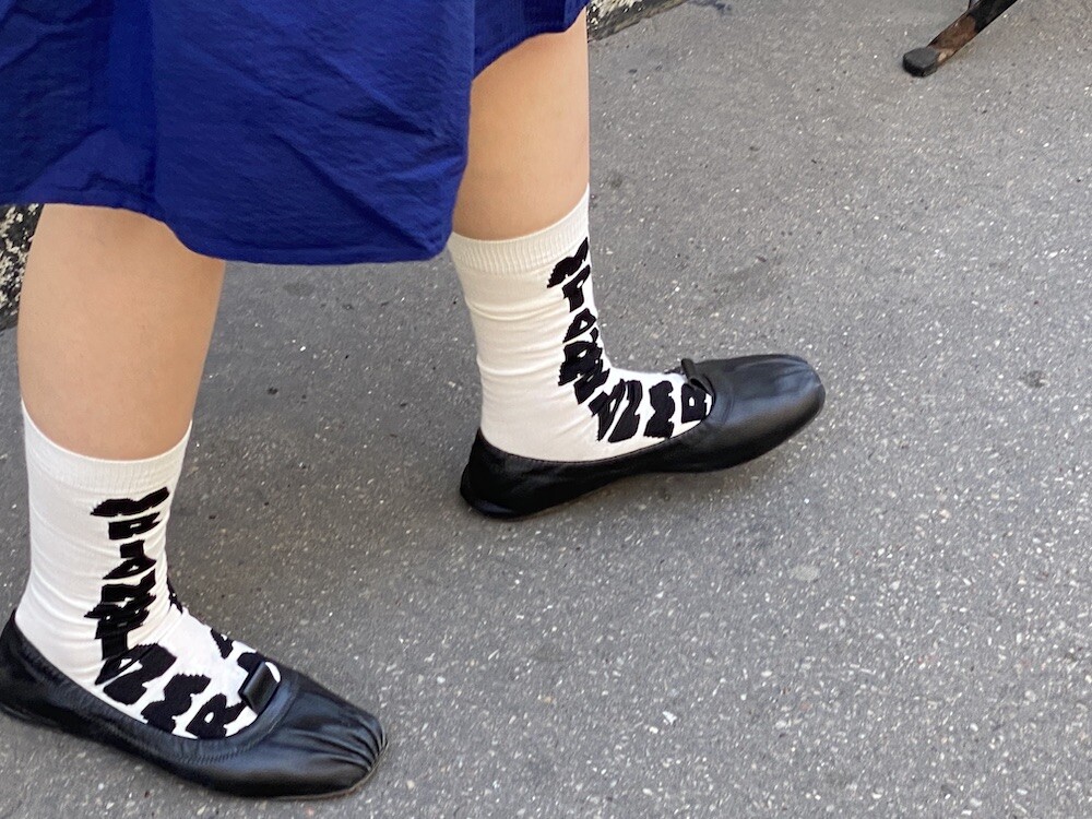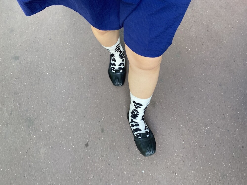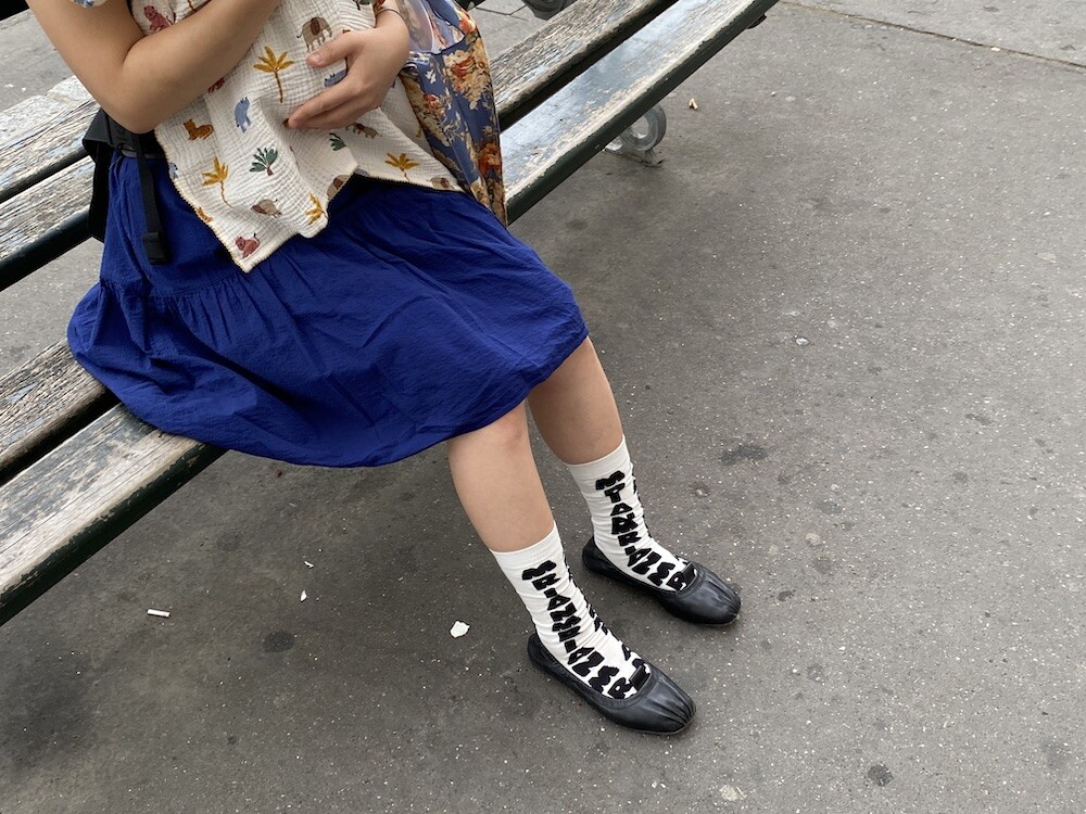 양말의 앞 부분에 MARNI 로고가 써져 있는 양말이에요. 흰색 바탕에 검정색 로고가 적혀 있는데 강렬해 보이지만 코디하면 또 엄청 튀지는 않아서 딱 포인트 주기에 좋더라고요. 원피스에도, 바지에도 잘 어울려요! 종아리 반 정도까지 올라오는 길이감에, 쫀쫀한 밴드로 흘러내리지 않아서 좋아요. 저는 보통 외국 신발 37사이즈를 신는데 이 양말은 조이지 않게 딱 맞았습니다.