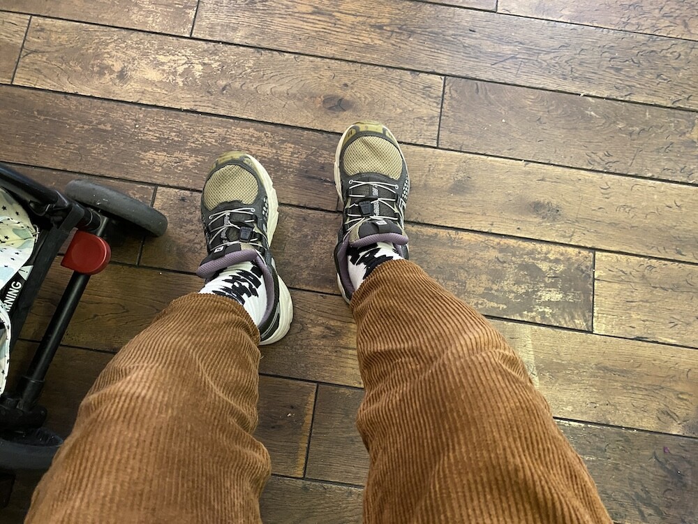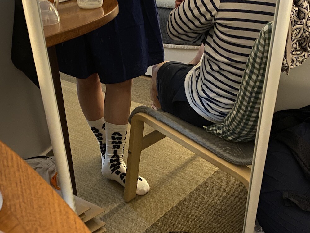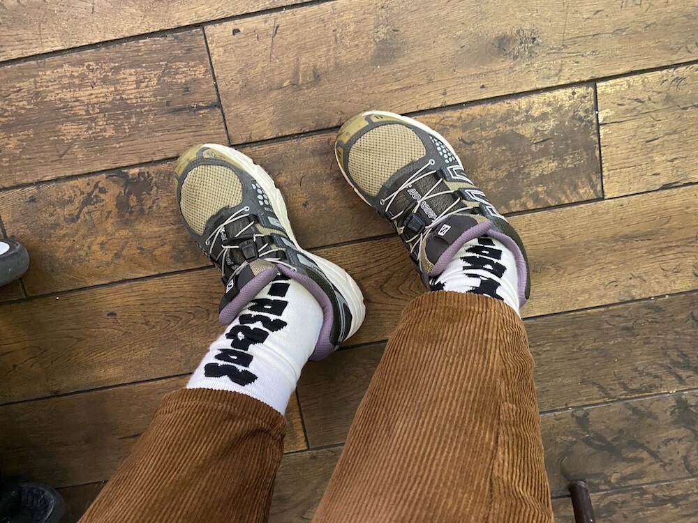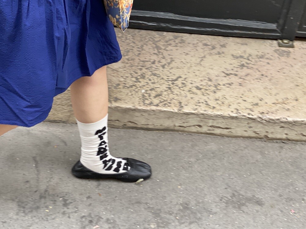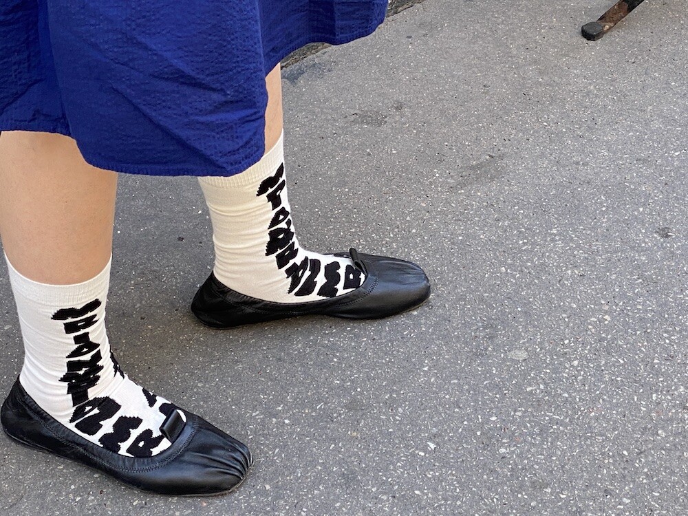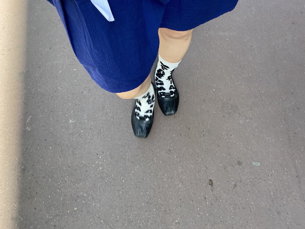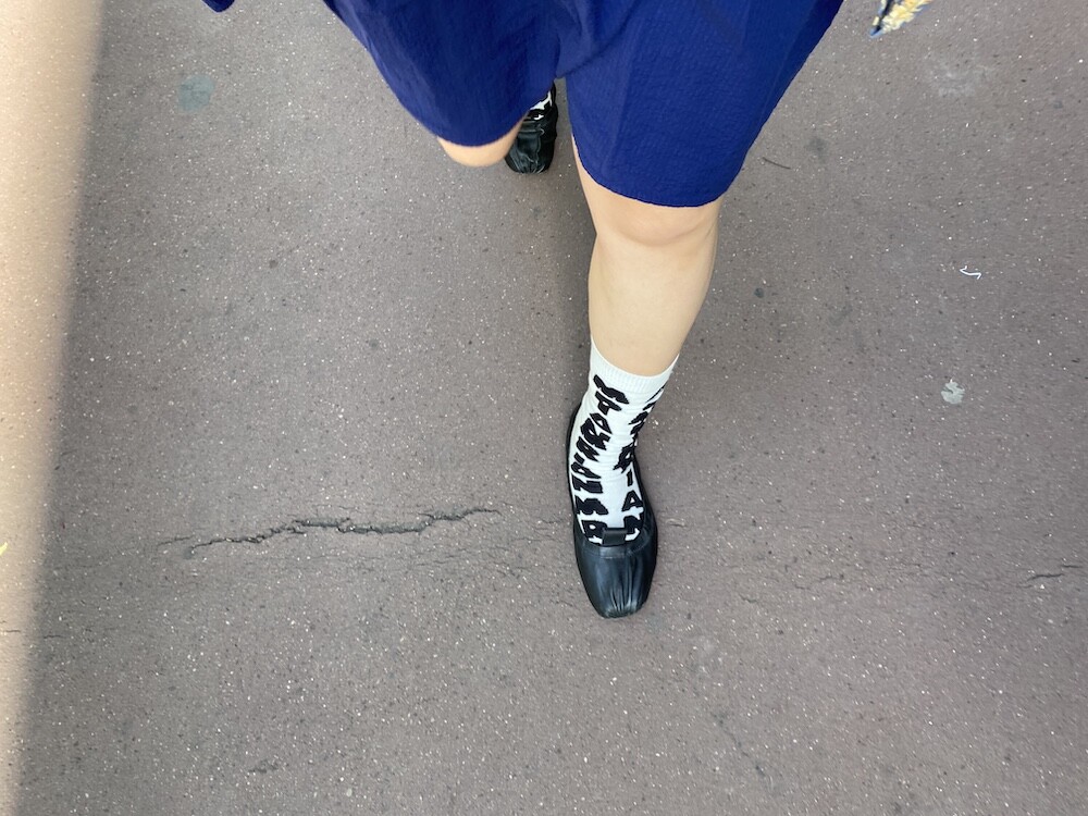 양말의 앞 부분에 MARNI 로고가 써져 있는 양말이에요. 흰색 바탕에 검정색 로고가 적혀 있는데 강렬해 보이지만 코디하면 또 엄청 튀지는 않아서 딱 포인트 주기에 좋더라고요. 원피스에도, 바지에도 잘 어울려요! 종아리 반 정도까지 올라오는 길이감에, 쫀쫀한 밴드로 흘러내리지 않아서 좋아요. 저는 보통 외국 신발 37사이즈를 신는데 이 양말은 조이지 않게 딱 맞았습니다.