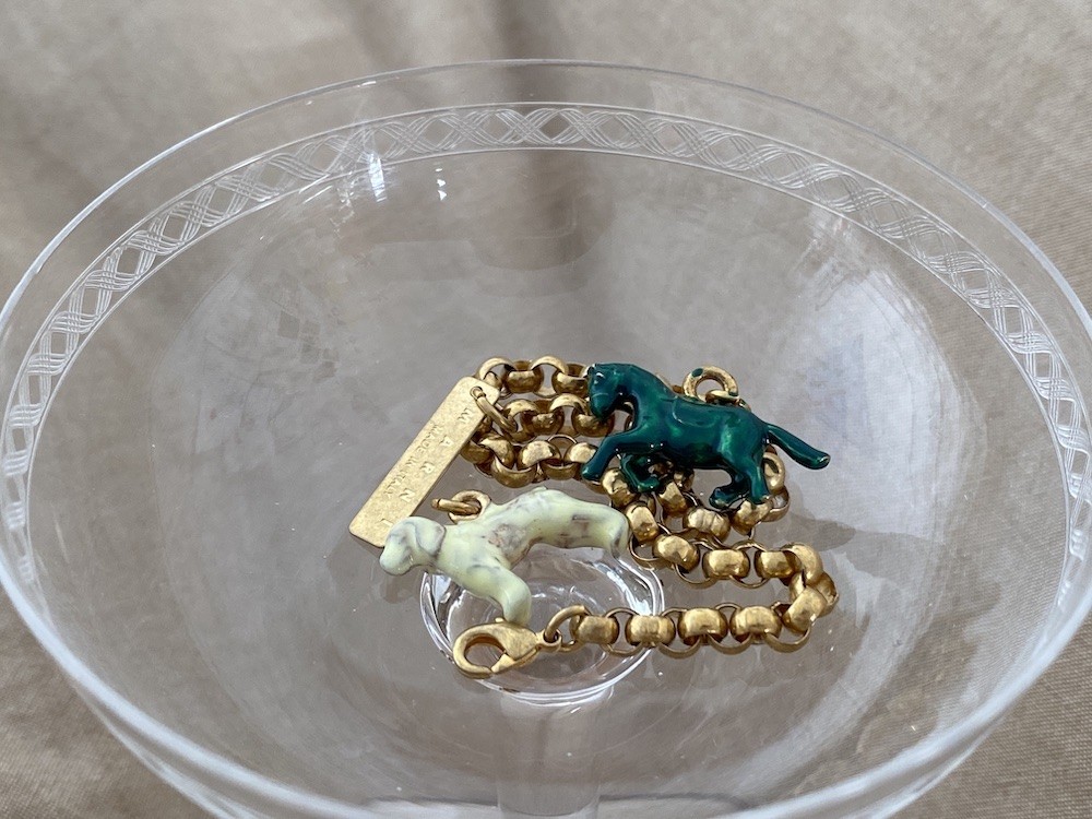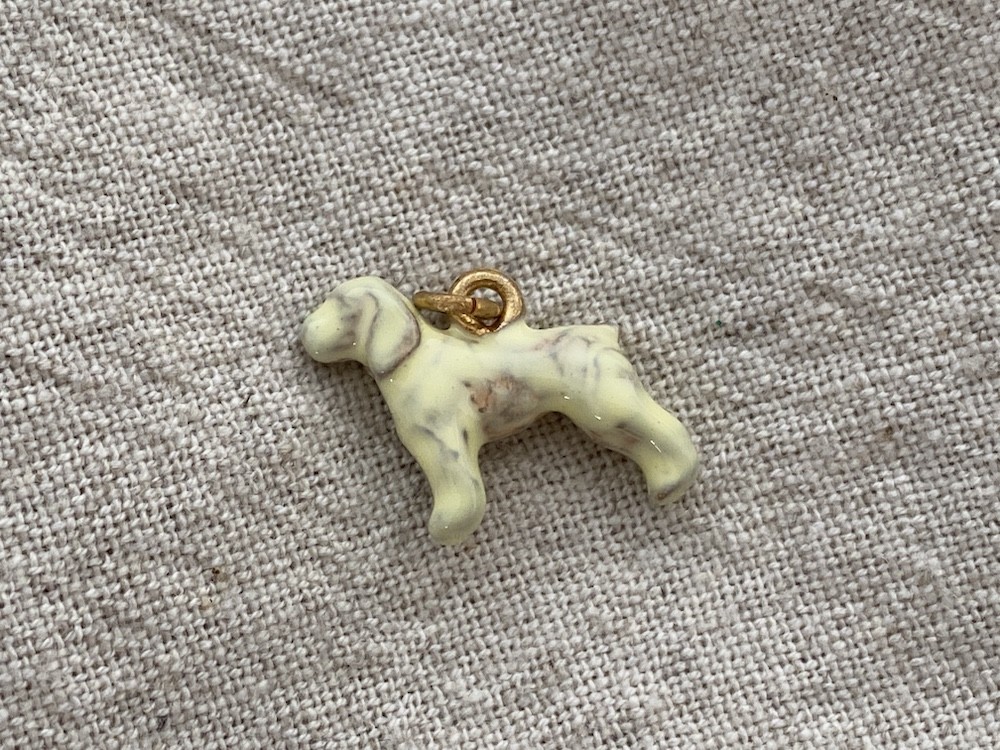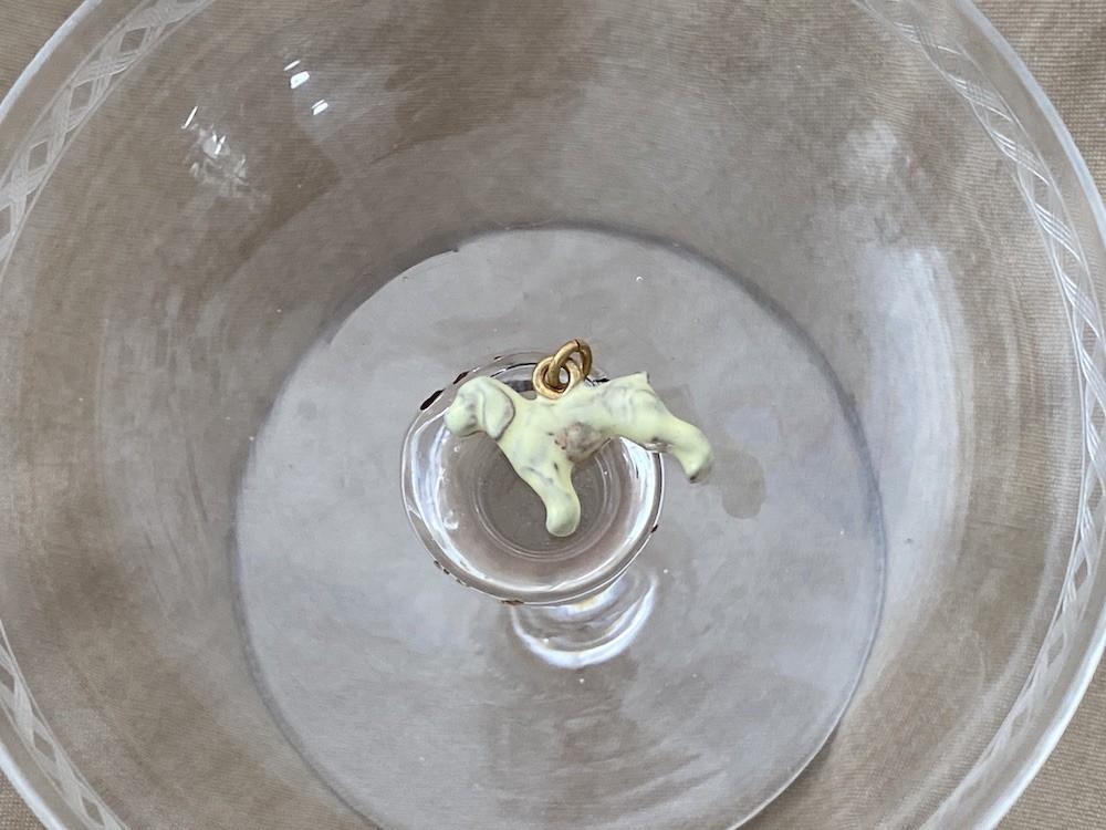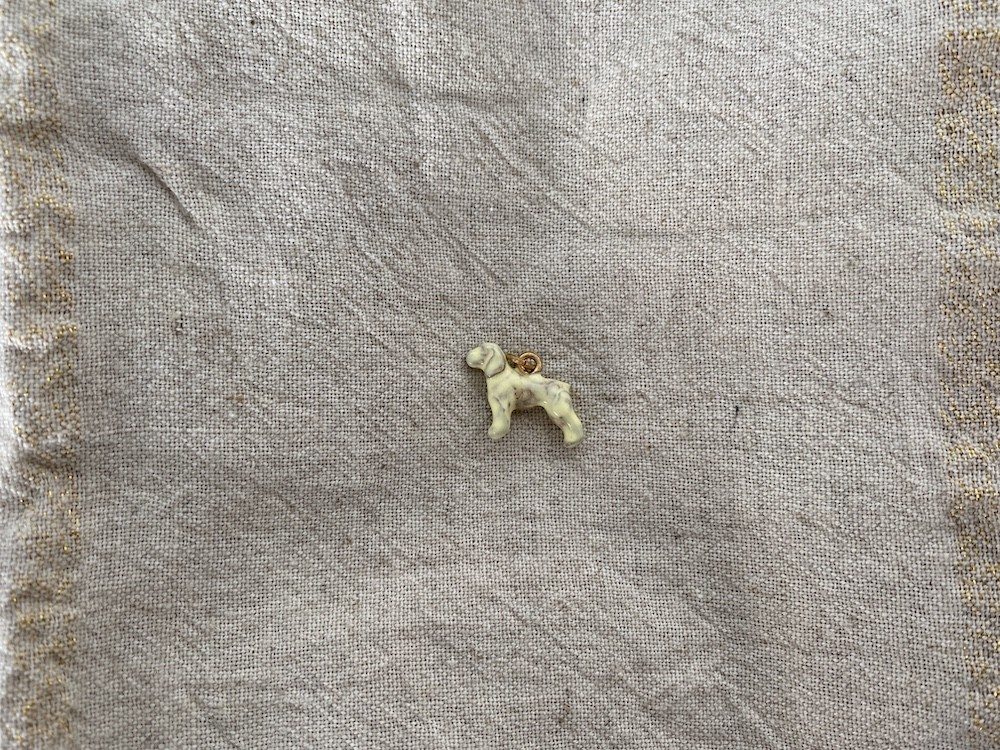마르니 토이(TOYS) 시리즈에서 나왔던 펜던트로, 가지고 계신 목걸이나 팔찌에 걸면 귀여운 느낌을 완성시켜주는 참이에요. 메탈 소재의 모양 위에 노란빛 베이지의 색깔을 덧입혀 장난감 같기도 하고 사탕같기도 한 느낌이 나네요.
