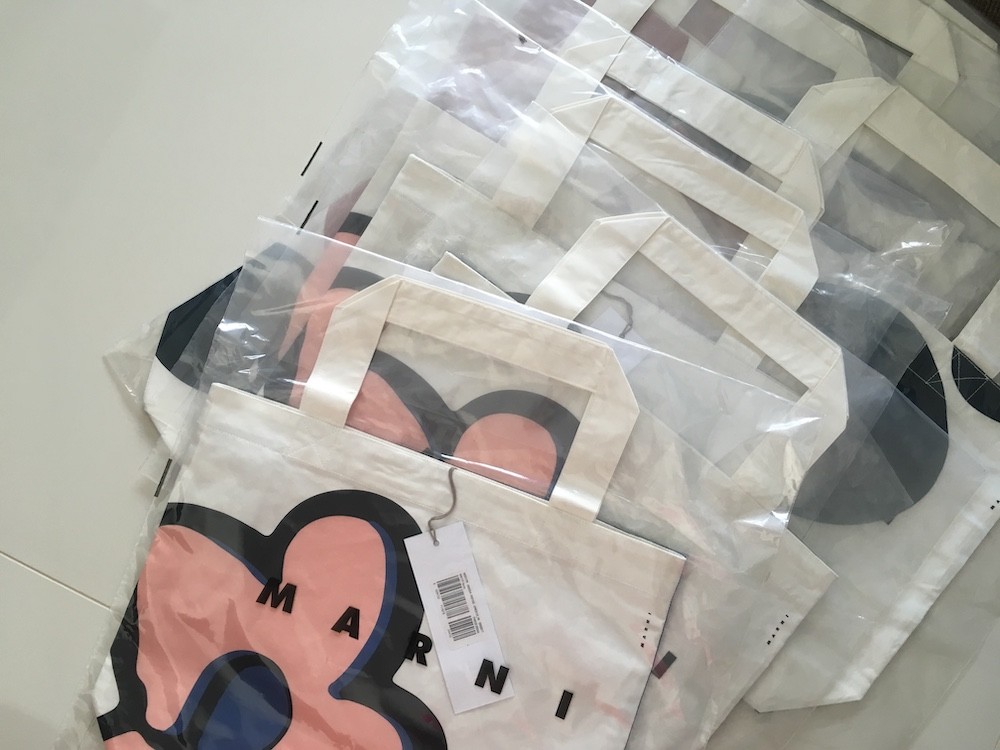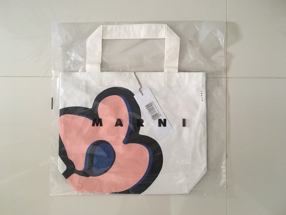앞뒷면에 다른 프린트가 되어있고 세로로 작게 마르니 이름이 프린트되어 있어서 특이해요.
