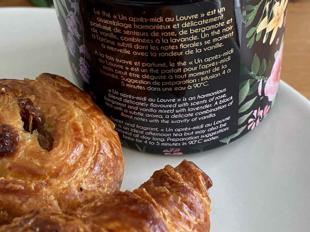 '루브르에서의 오후'는 홍차에 장미 꽃잎, 베르가못, 바닐라, 라벤더가 섞여 있어서 아주 부드러워요. 90도의 물에 5분간 우린 후 마시라고 써져 있지만 차갑게 마셔도 부드러워서 너무 좋더라고요. 장미 향, 바닐라 향이 잘 어우러져 있어 아주 향기로운 시간을 보내실 수 있을 거예요. 차의 이름처럼, 이 차를 마시면서 루브르에서의 오후를 보내는 상상을 해보시면 어떨까요?