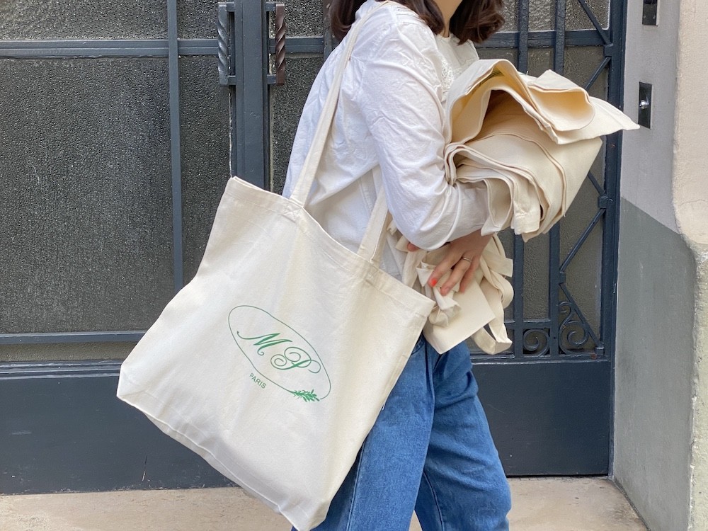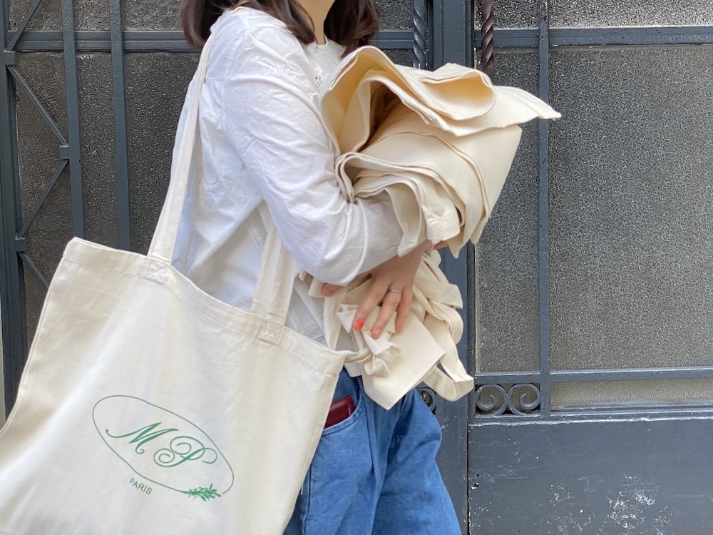 어느 날, 빵을 사러갔던 남편이 에코백을 하나 사갖고 왔더라고요. 가방이 너무 예뻐서 마켓에 입고했으면 해서 사왔다고요. 남편이 스스로 바잉을, 그것도 본인 의지로 해갖고 온 건 처음이라 신기했는데 확인해보니 가방이 너무 예쁜 거예요!