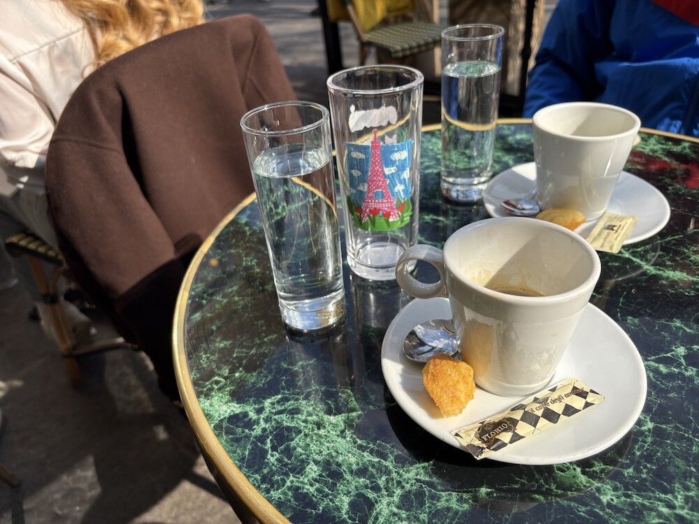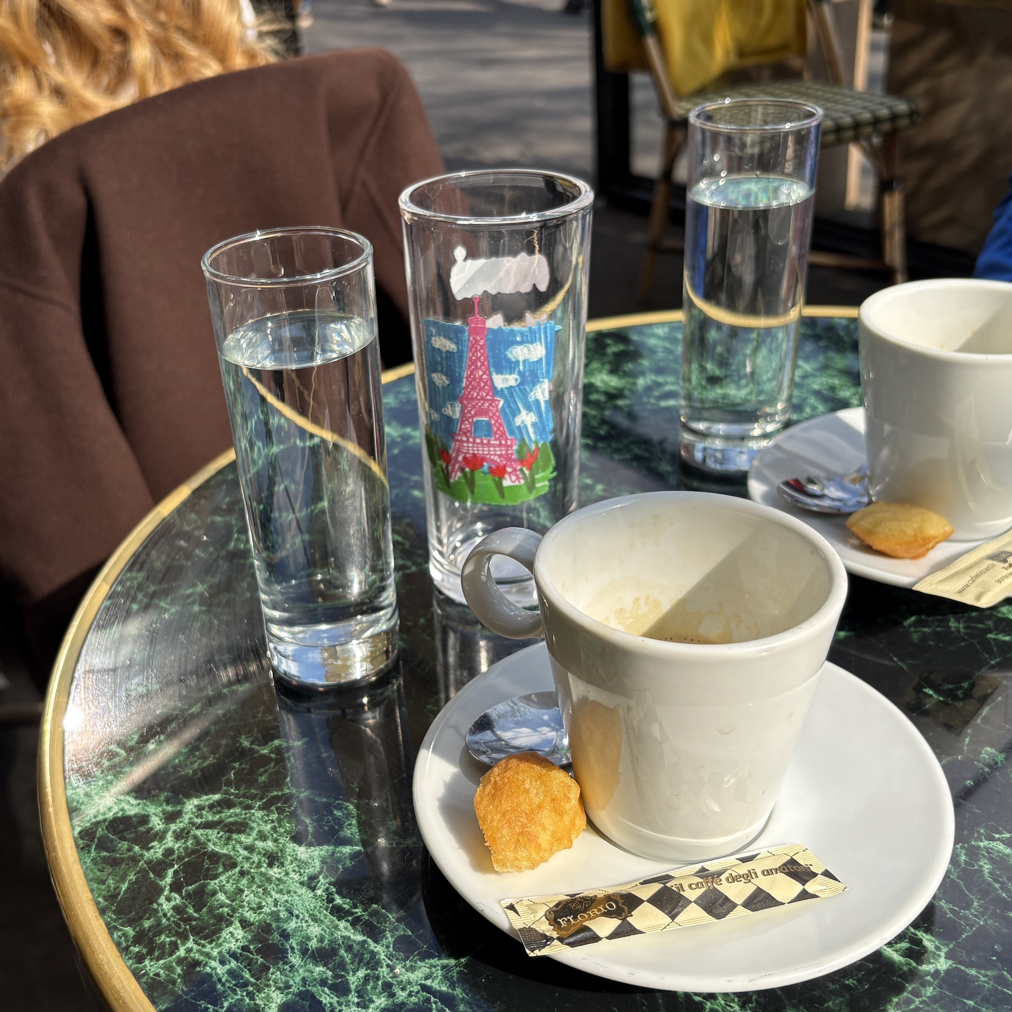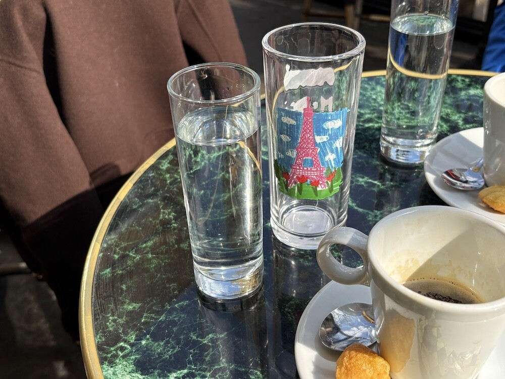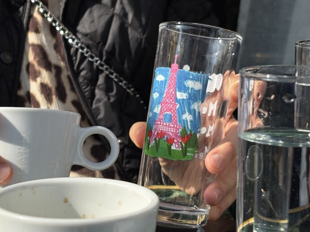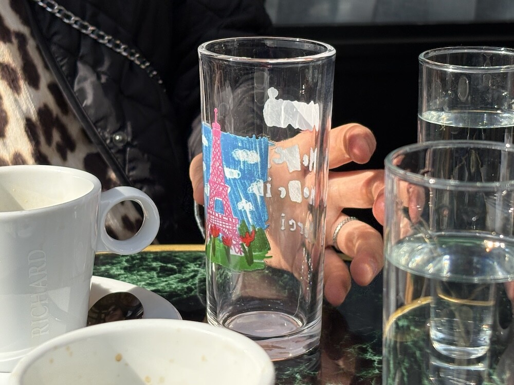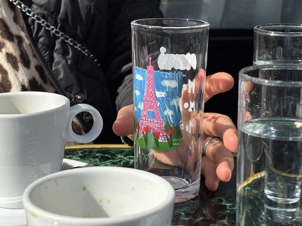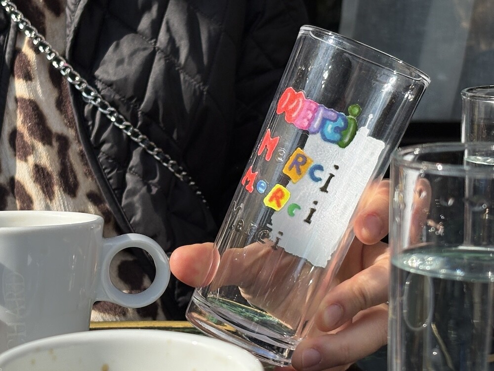 앞쪽에는 에펠탑 그림이, 뒤쪽에는 메르시 Merci라고 써진 다양한 글씨들이 그려져 있어요. 앞뒷면 그림이 달라서 두 가지 느낌으로 사용할 수 있는 것도 좋네요. 두툼한 유리라 튼튼하게 오래오래 사용하실 수 있으실 거예요.