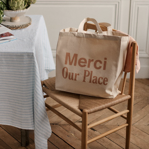 메르시 x 아워 플레이스(Merci x Our Place) 에코백입니다.