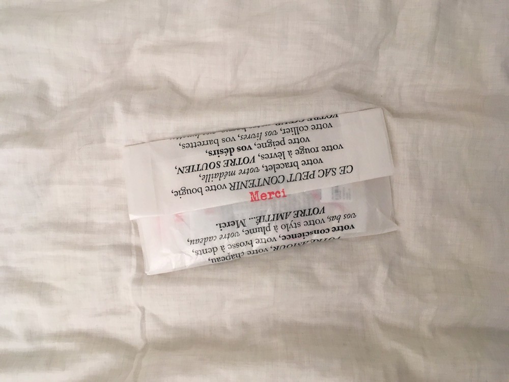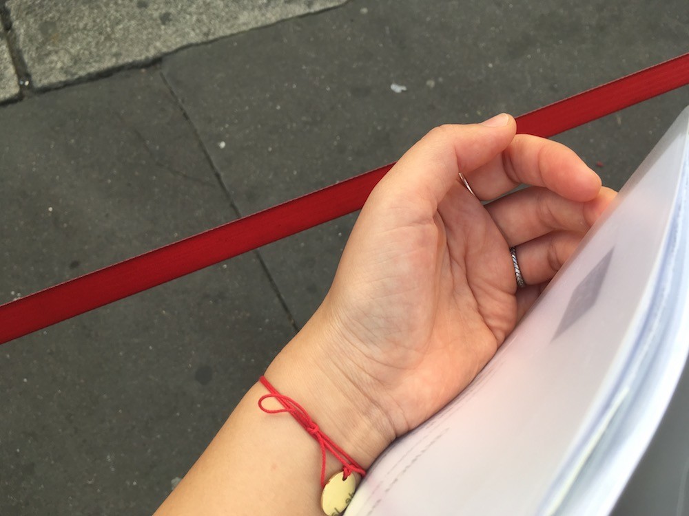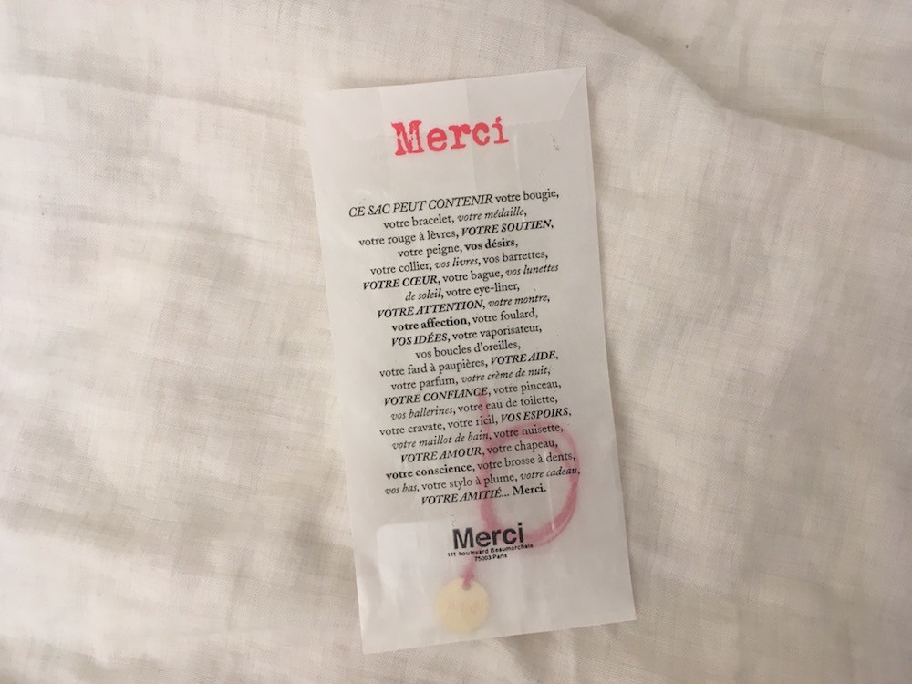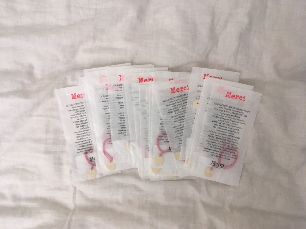 파리 3구에 위치한 편집숍 메르시(Merci)의 시그니처 빨간줄 팔찌입니다.