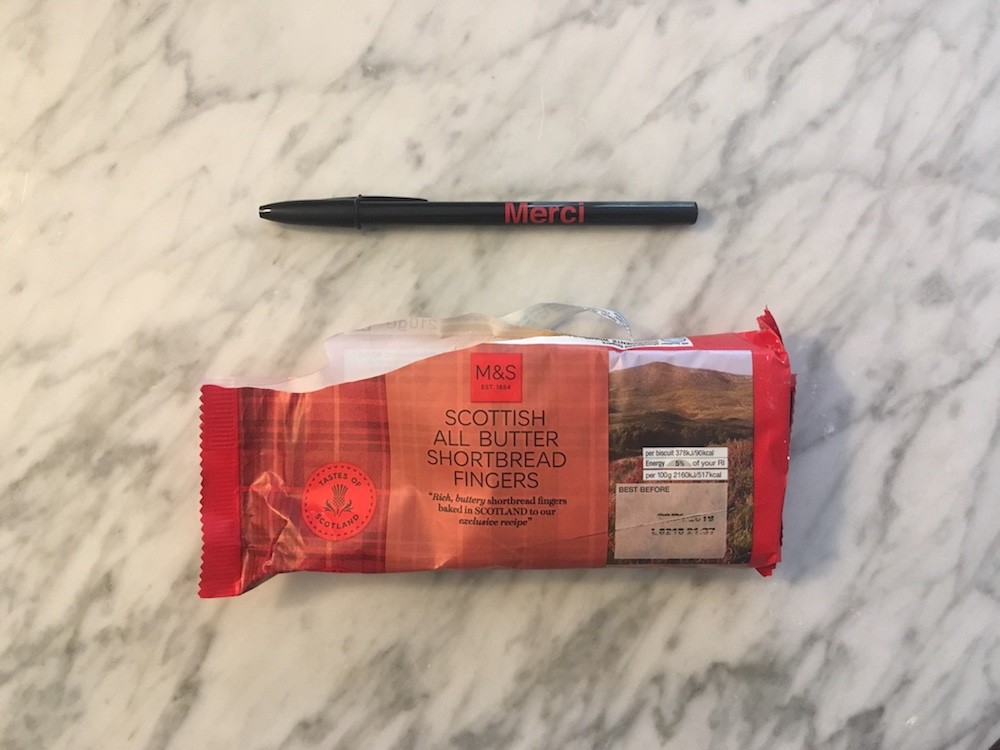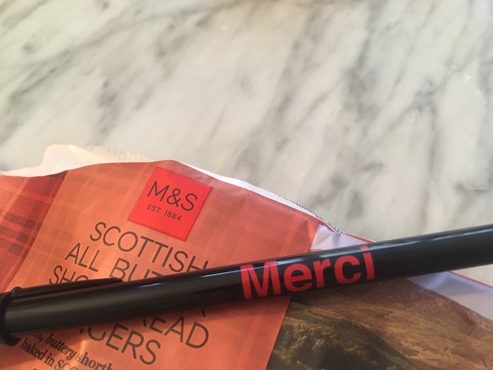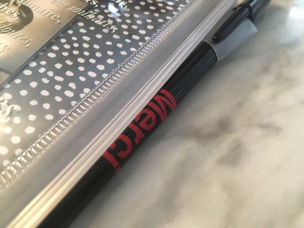 Stylo. Lettrage "Merci". Encre noire. Pointe moyenne.
