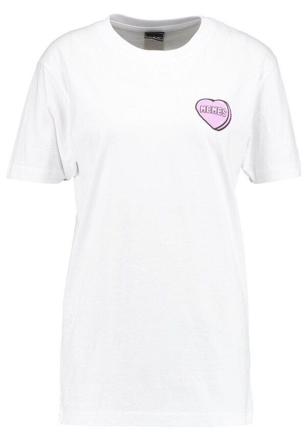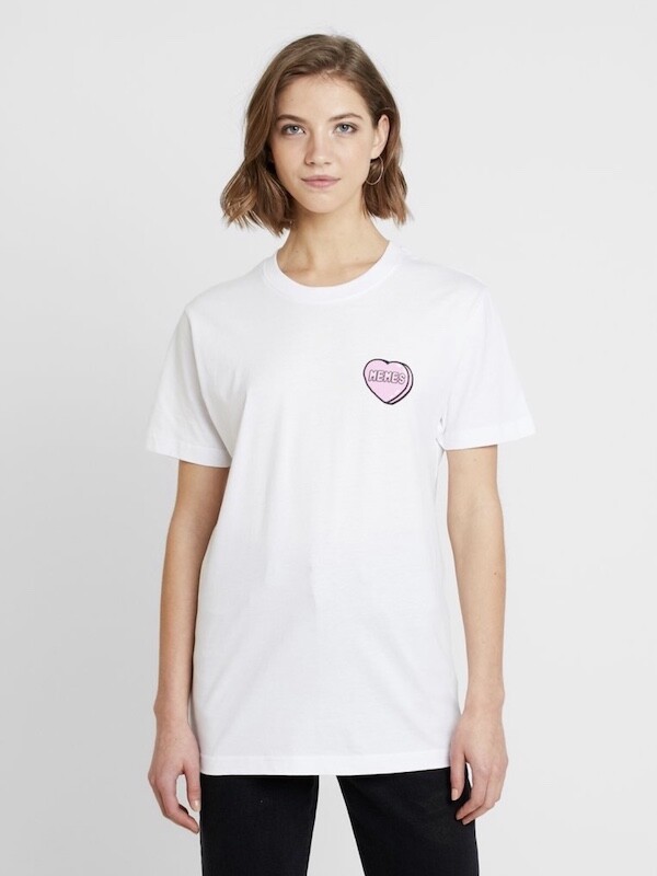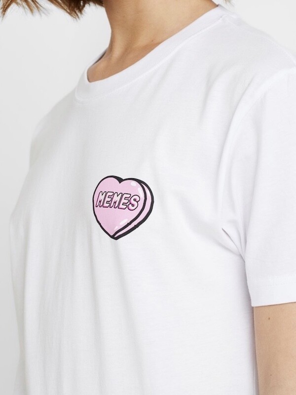 미스터 티(Mister Tee)의 멤 MEMES 하트 티셔츠 흰색, 여성 M 사이즈입니다.