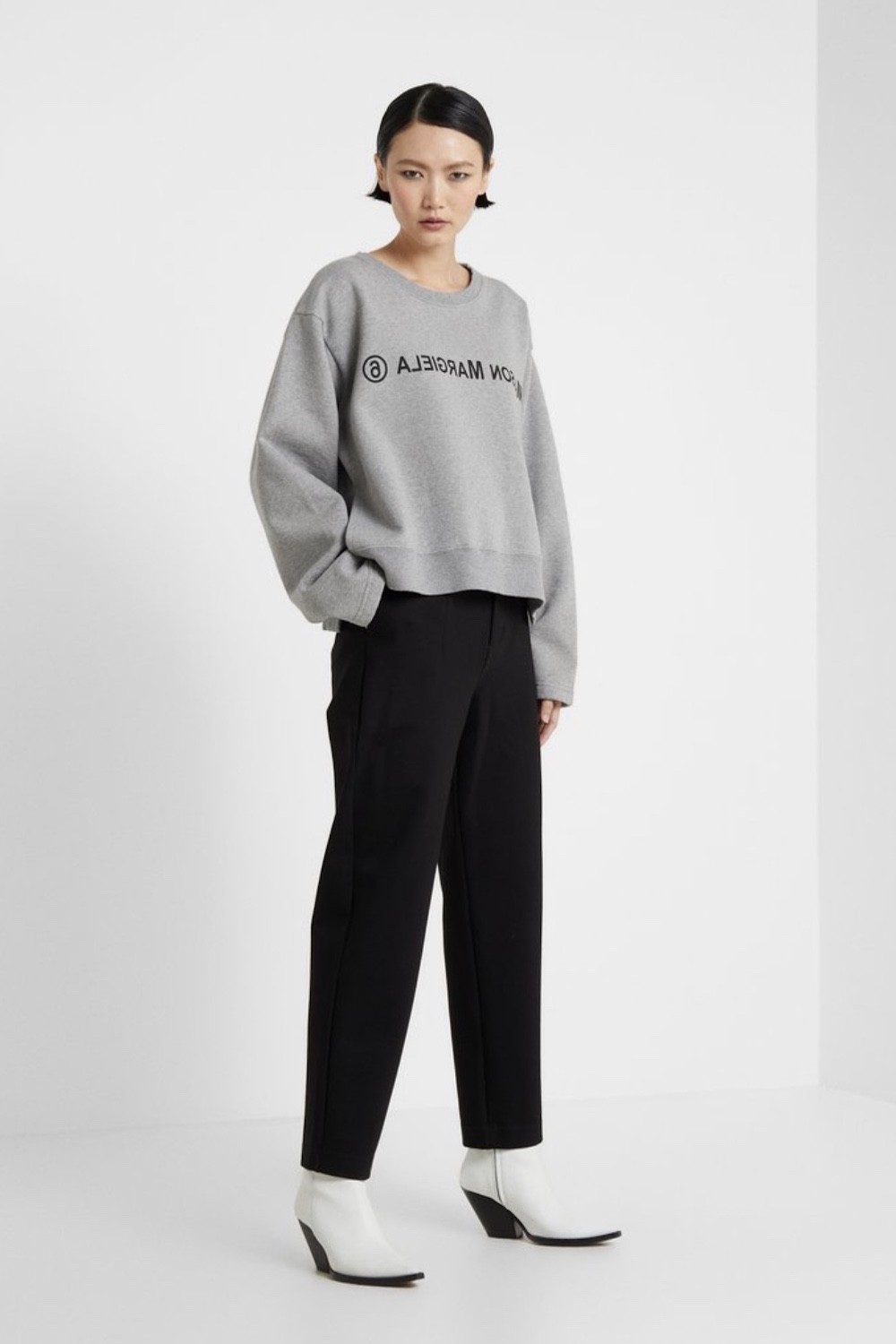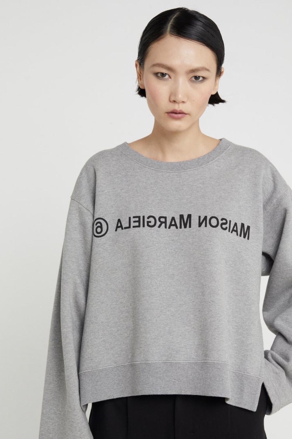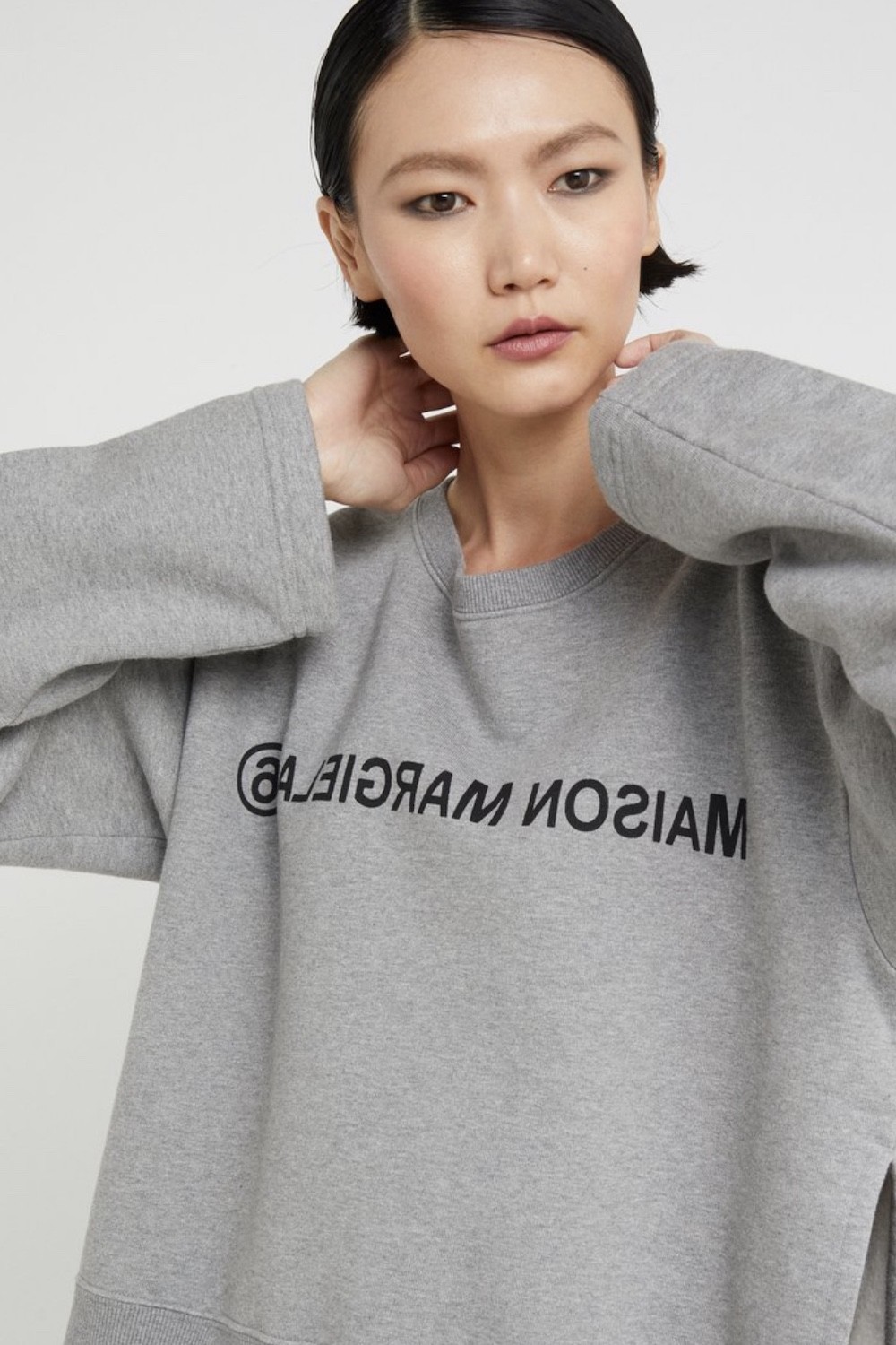 이 스웻셔츠는 우선 "MAISON MARGIELA 6" 이라고 씌여진 앞면에서 포인트를 한번 확 주어서 눈길을 끌어요. 소매는 일반 스웻셔츠보다 길어서 손등을 반정도 덮는 디자인이고요, 옆선이 트여 있어서 통 넓은 원피스나 바지와 입어도 예뻐요.