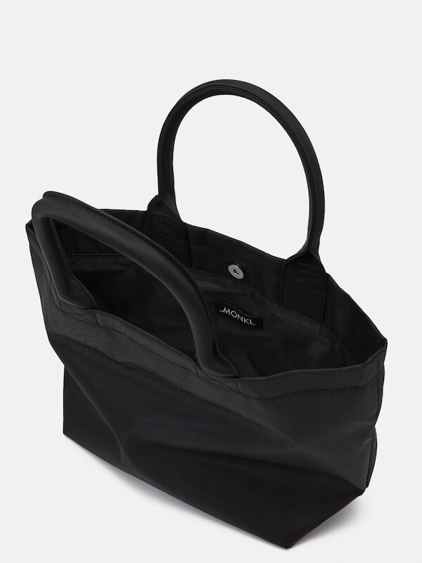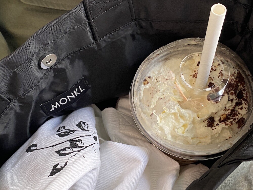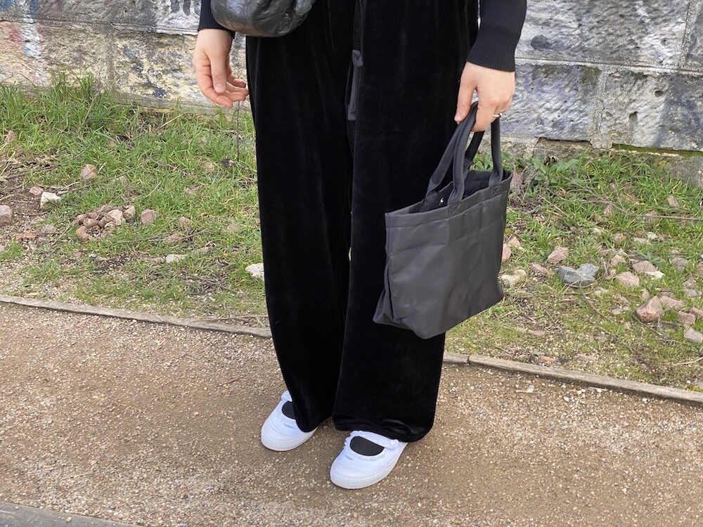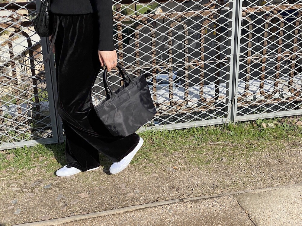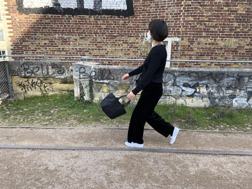이 귀여운 가방은 재생 폴리에스테르로 만들어진, 환경을 생각하는 가방이에요. 한국 여성들한테 잘 어울리는 사이즈라 손으로 들어도, 팔에 걸쳐도 딱 예뻐요. 밑면이 넓어서 모양이 안정적이라 텀블러나 음료를 넣어 가지고 다녀도 넘어지지 않고 좋더라고요. 또, 입구에 자석으로 된 똑딱이 단추가 있어서 가방을 벌어지지 않게 들고 다닐 수 있어요. 롱샴에서 제일 유명한 디자인 가방 아시죠? 그것과 비슷한데 소재감이 조금 더 부드러운 느낌이라고 생각하시면 좋을 것 같아요.