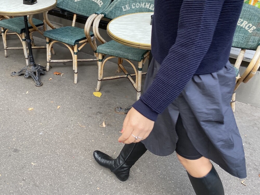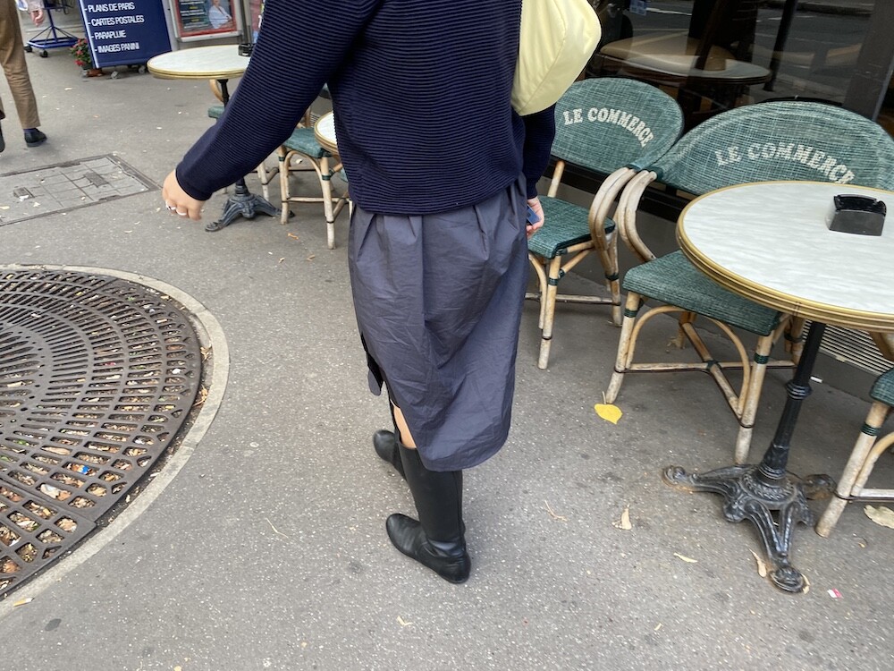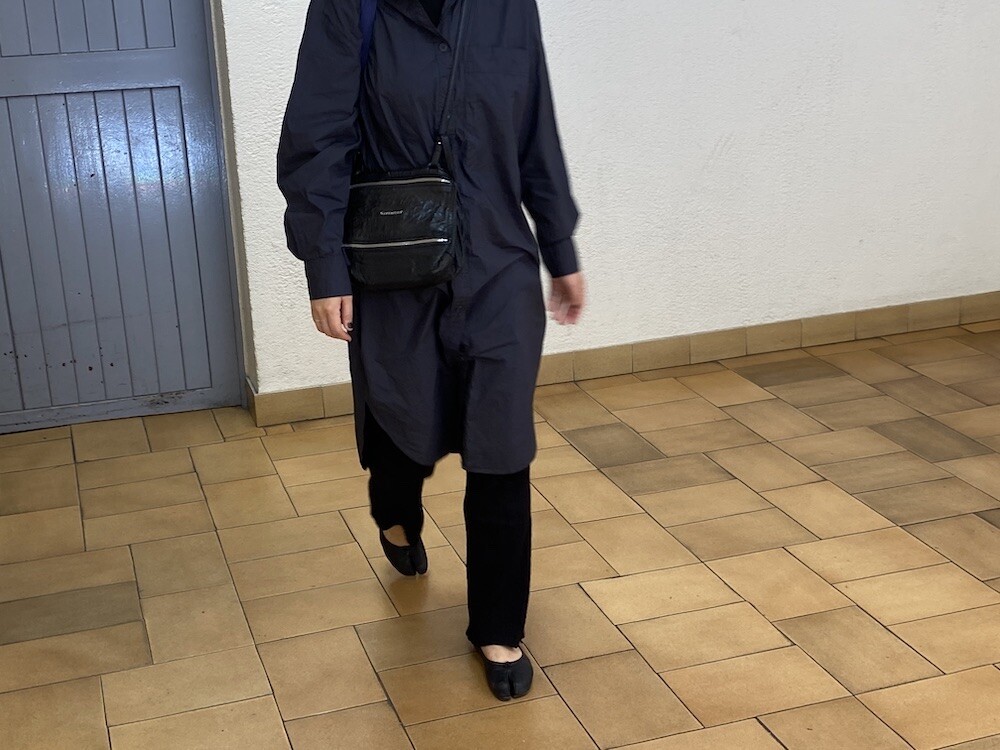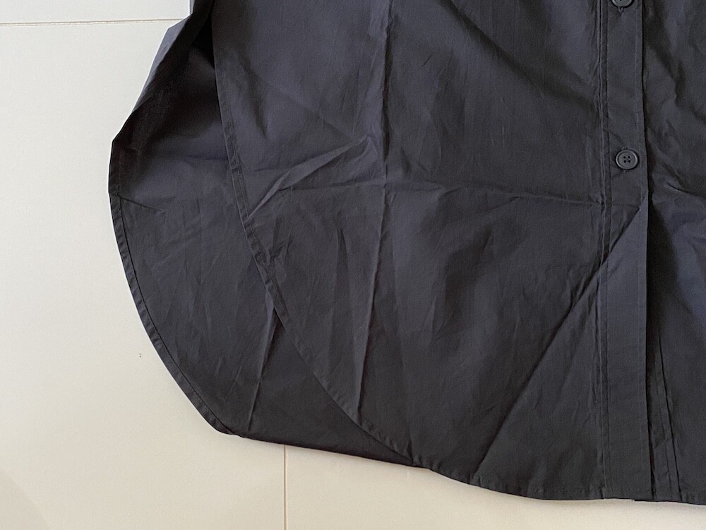 밑단 옆부분에 턱시도처럼 파여 있는 디테일이 있어서 셔츠가 심심하지 않고 예뻐요. 그런데 파임의 깊이가 좀 깊어서 안에 롱 슬립이나 바지를 입으셔야 안전해요. 저는 바이커 쇼츠(쫄바지) 입고 입으니 딱 좋더라고요.