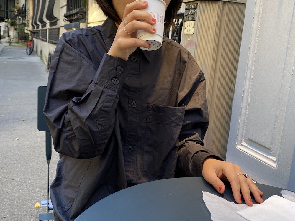 저는 롱 셔츠를 좋아해요. 하체가 큰 편이라 짧은 상의보다는 이렇게 엉덩이가 다 덮이는 디자인을 좋아하거든요. 누구보다도 롱 셔츠는 많이 사봤다 자부할 수 있어요.